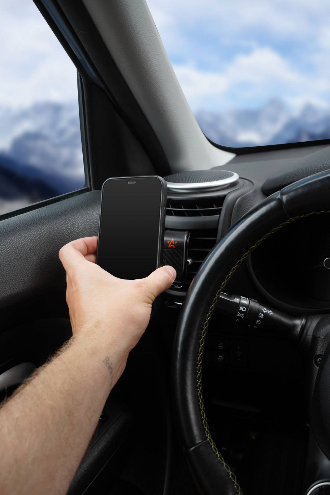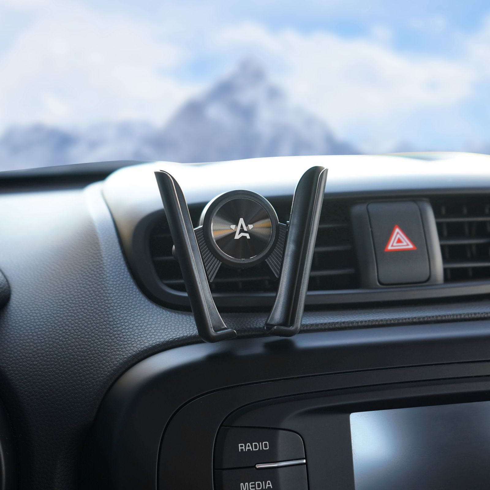 Держатель для телефона автомобильный в дефлектор гравитационный анодированный (AMS-U-21)