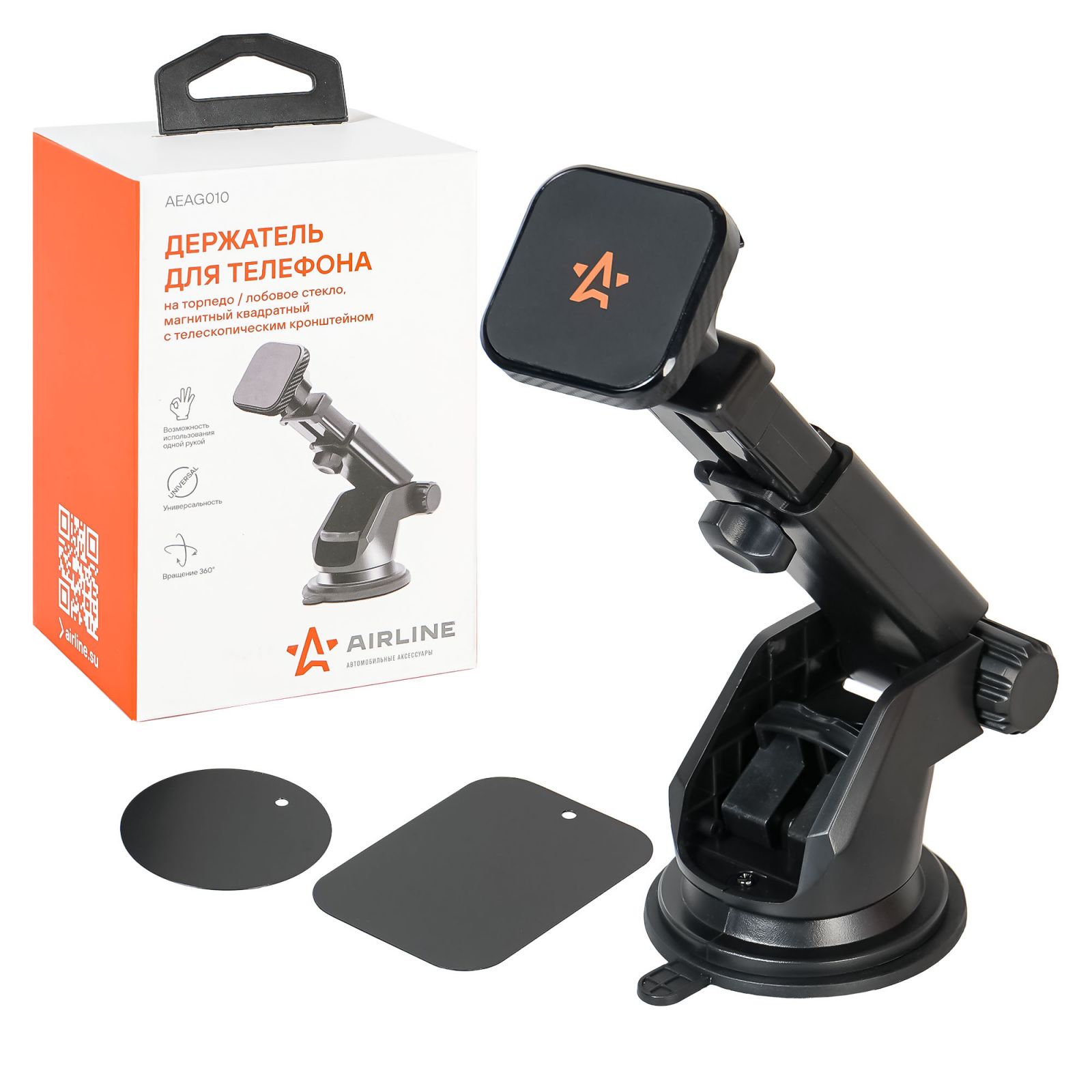 Держатель для телефона автомобильный на торпедо/лоб. стекло магнитный квадратный с телескоп. кроншт. (AEAG010)