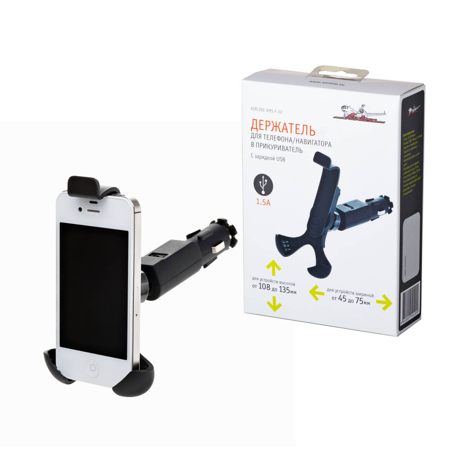 Держатель для телефона/навигатора в прикуриватель с зарядкой USB (AMS-F-02)