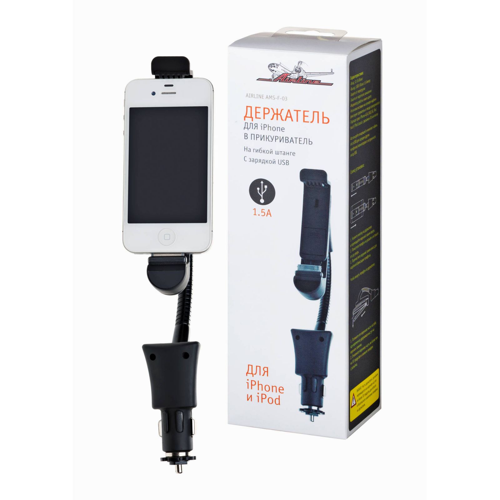 Держатель для iPhone в прикуриватель на гибкой штанге с зарядкой (AMS-F-03)