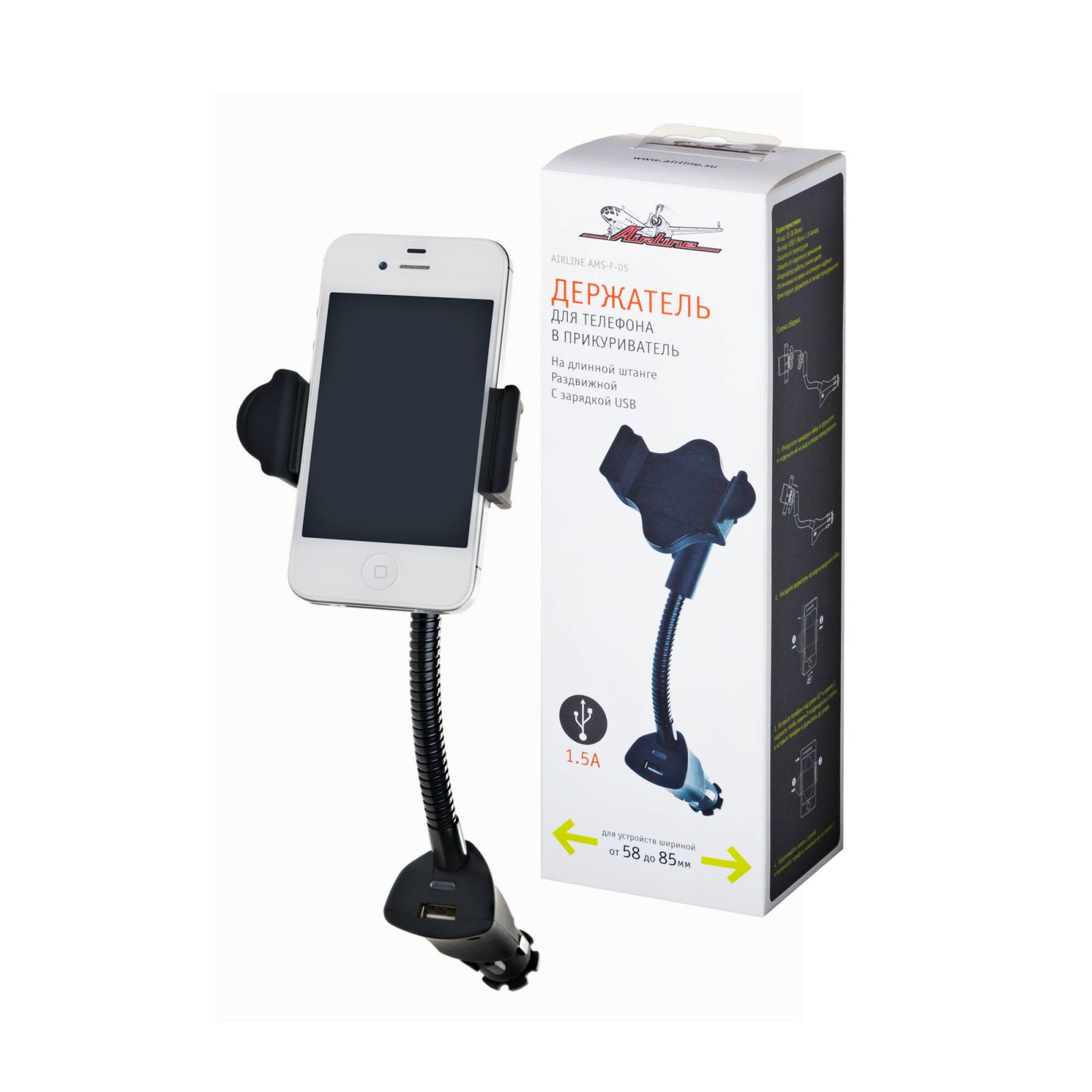 Держатель для телефона/навигатора в прикуриватель на длинной штанге с зарядкой USB (AMS-F-06)