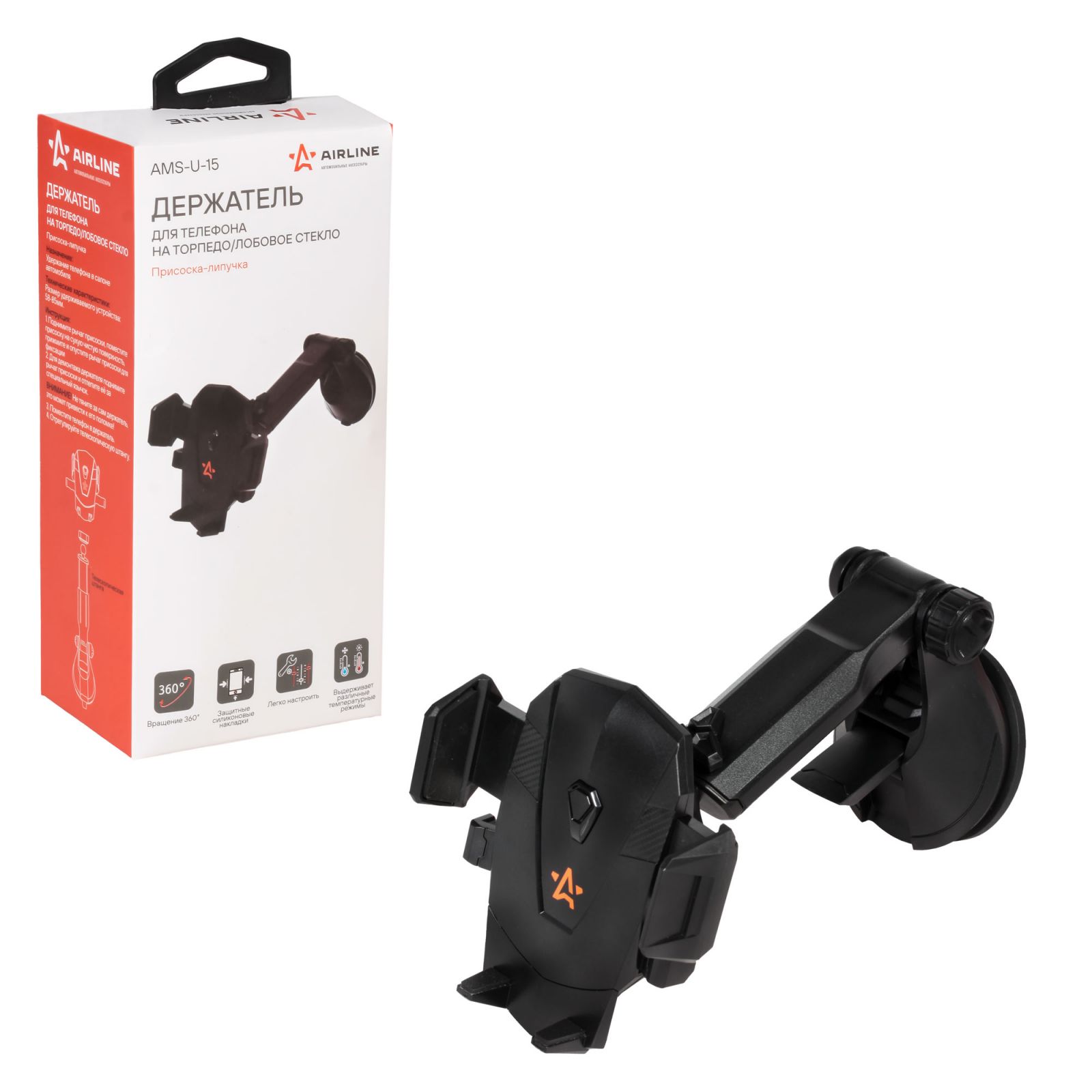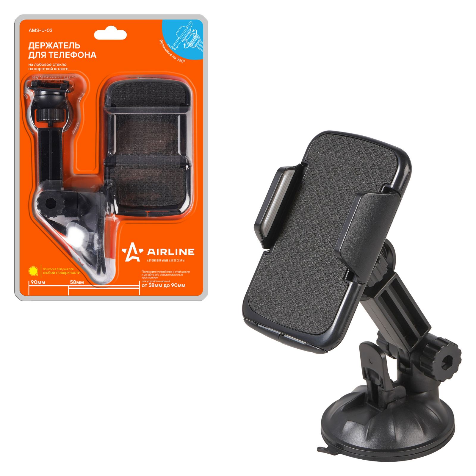 Держатель для телефона автомобильный присоска на лобовое стекло на короткой штанге (AMS-U-03)