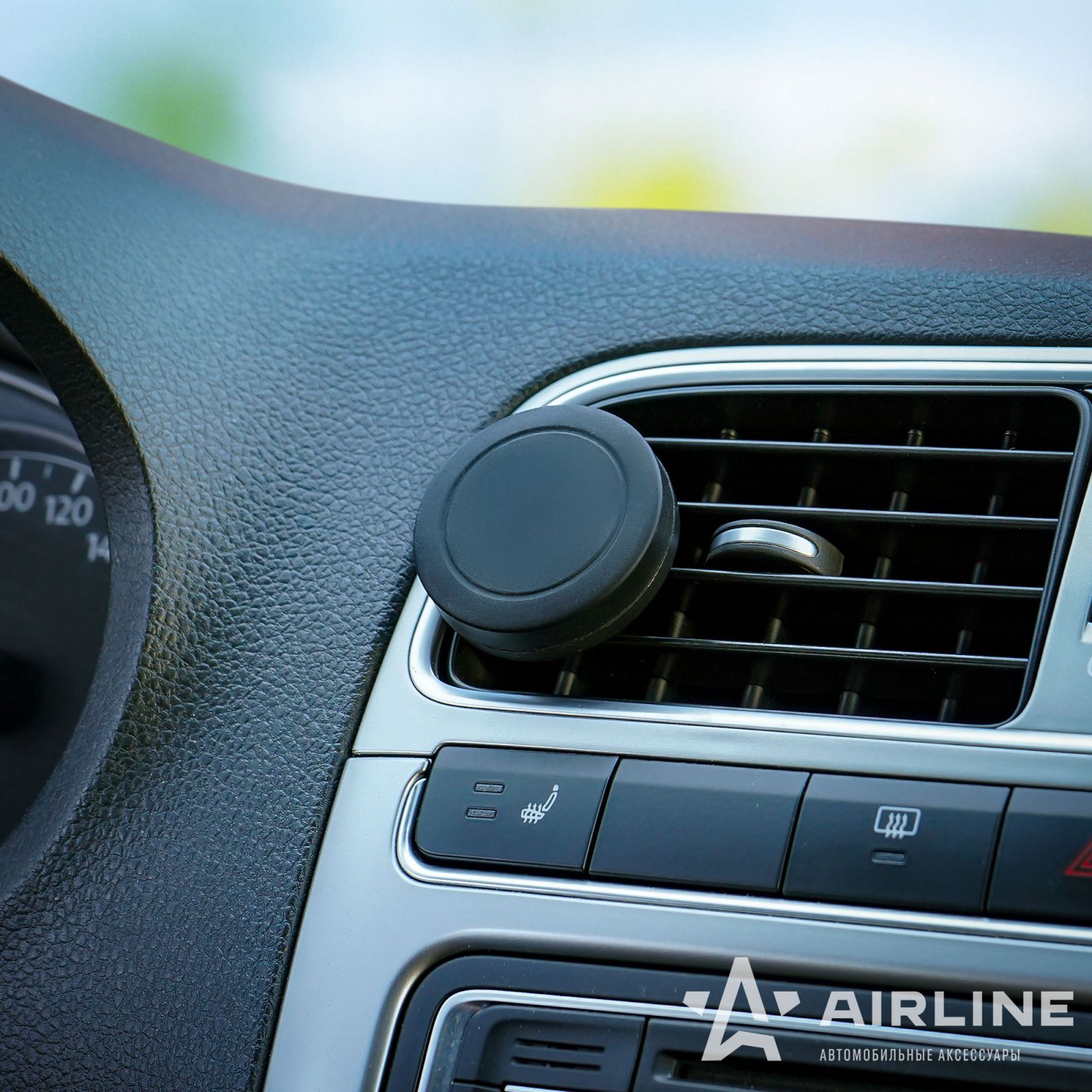 Держатель для телефона автомобильный в дефлектор магнитный обрезиненный круглый (AMS-U-09)