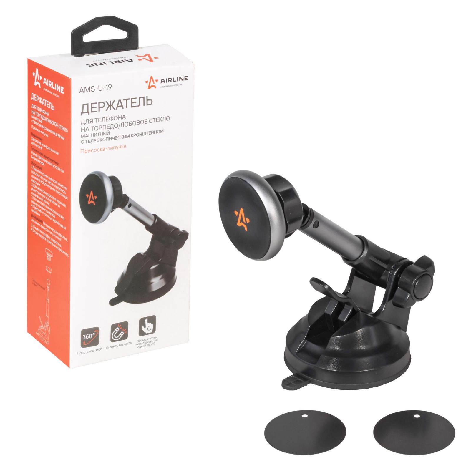 Держатель для телефона автомобильный на торпедо/лоб. стекло магнитный с телескоп. кроншт. (AMS-U-19)