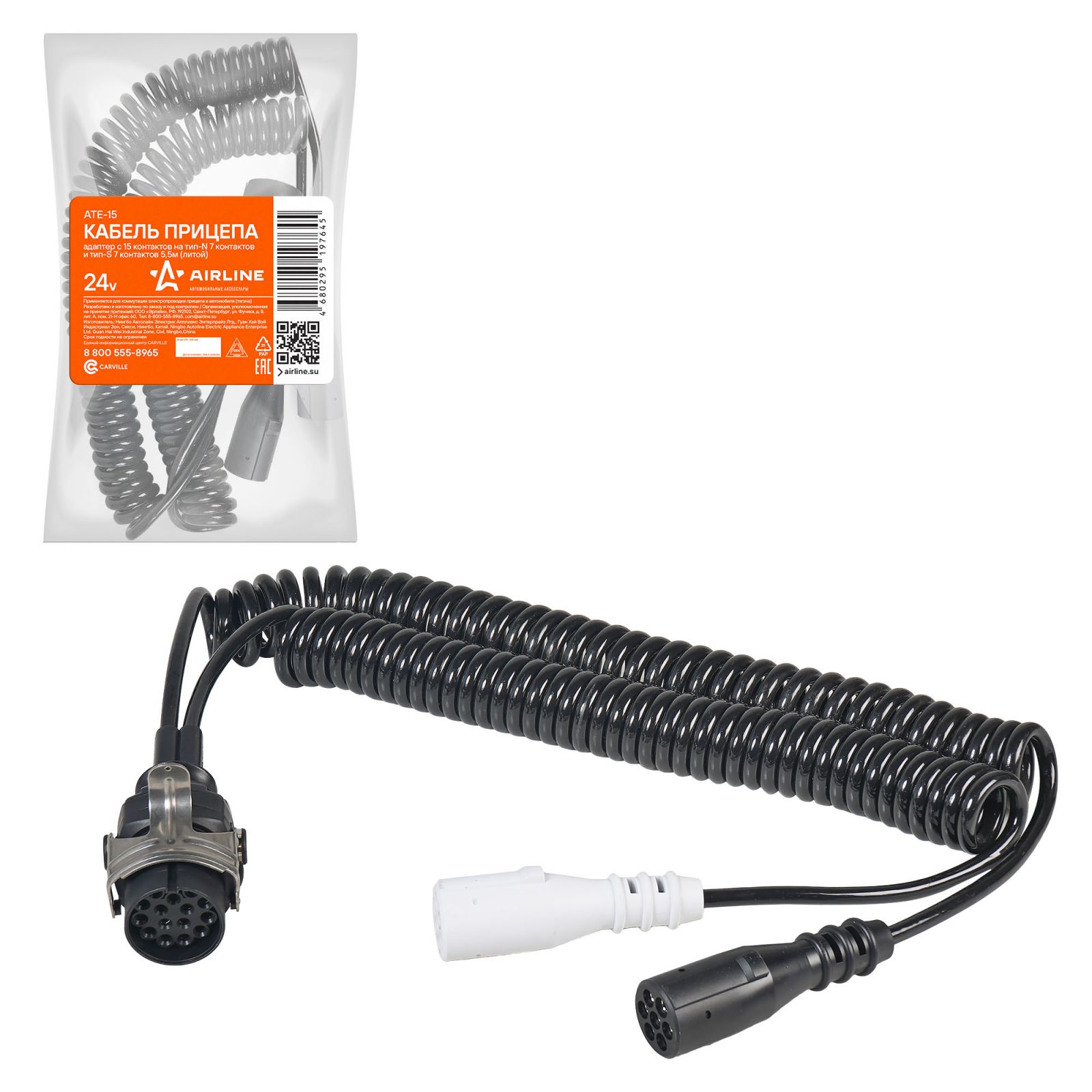Кабель прицепа 24В адаптер с 15 конт. на тип-N 7 конт. и тип-S 7 конт. 5,5м (литой) (ATE-15)