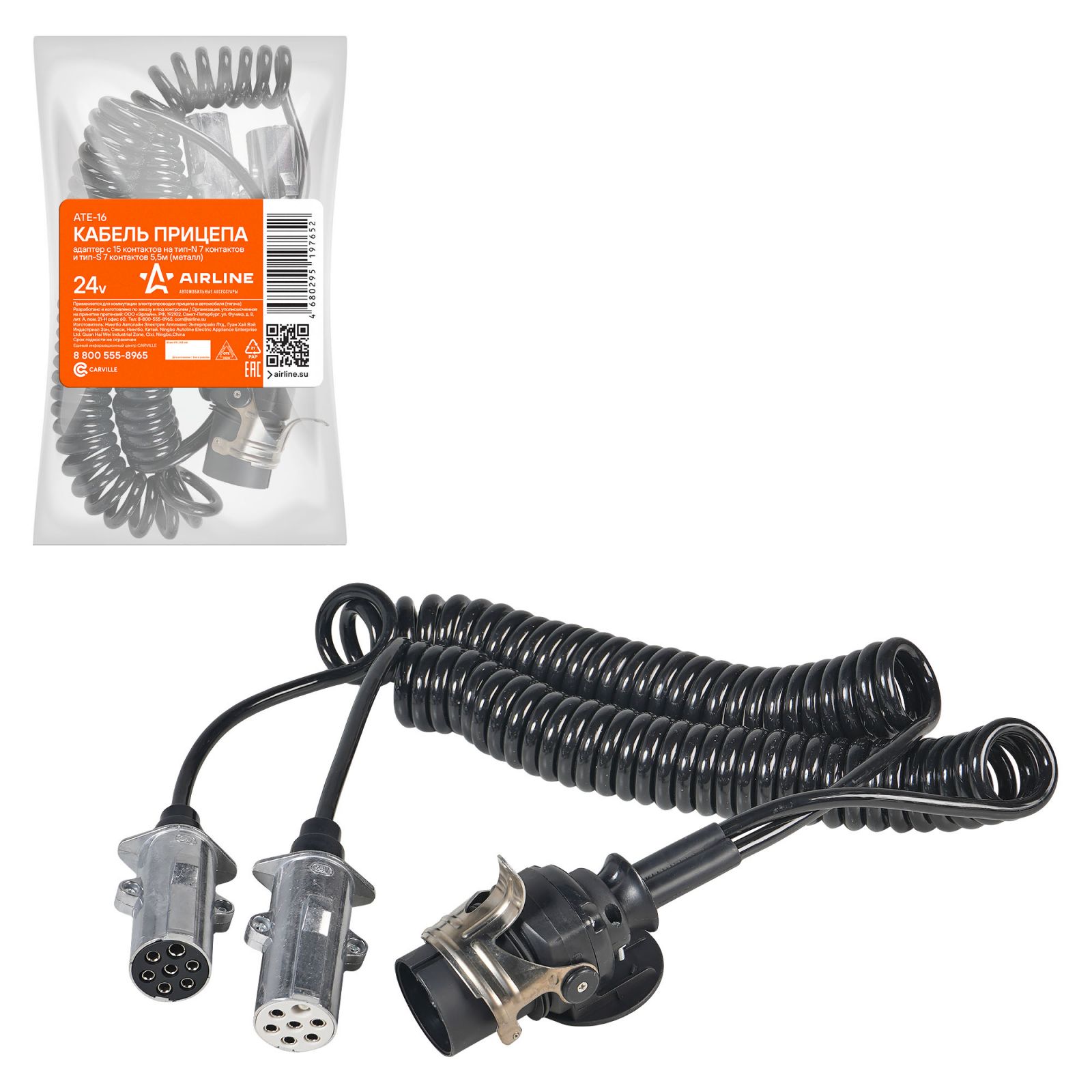 Кабель прицепа 24В адаптер с 15 конт. на тип-N 7 конт. и тип-S 7 конт. 4,5м (металл) (ATE-16)