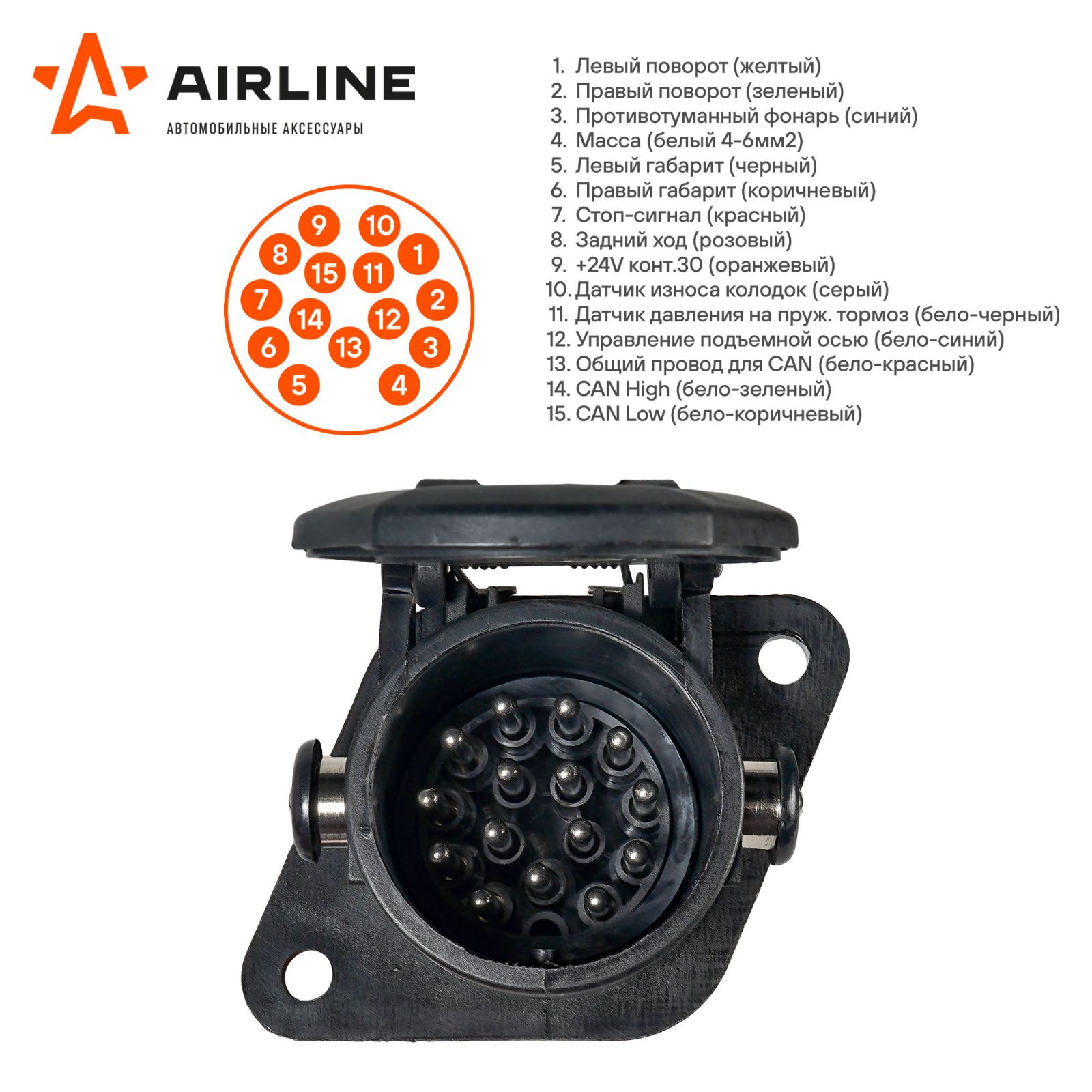 Вилка прицепа/тягача 24В 15 контактов пластик (ATE-44)