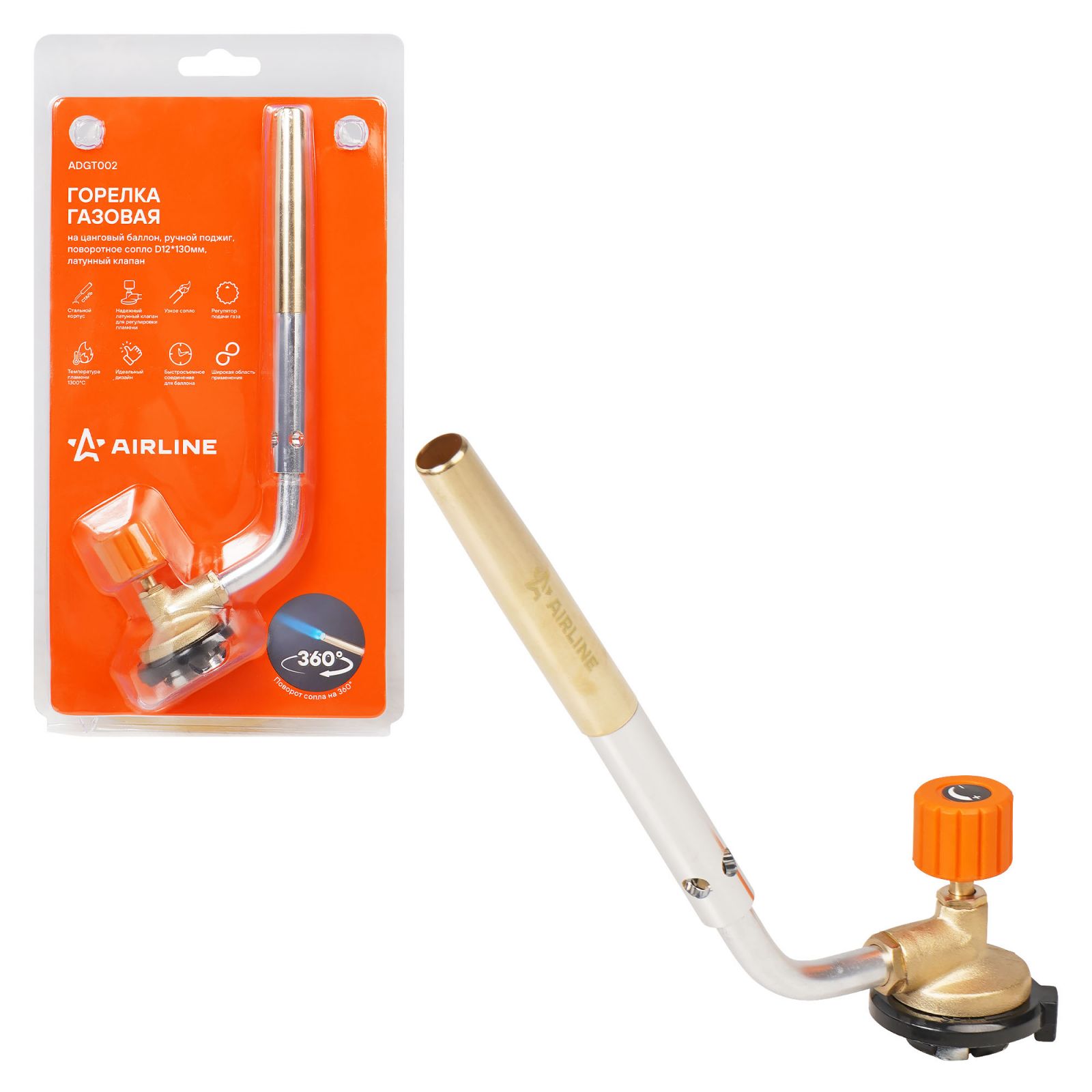 Горелка газовая на цанговый баллон, ручн.поджиг, поворот.сопло D12*130мм, латун.клапан (ADGT002)