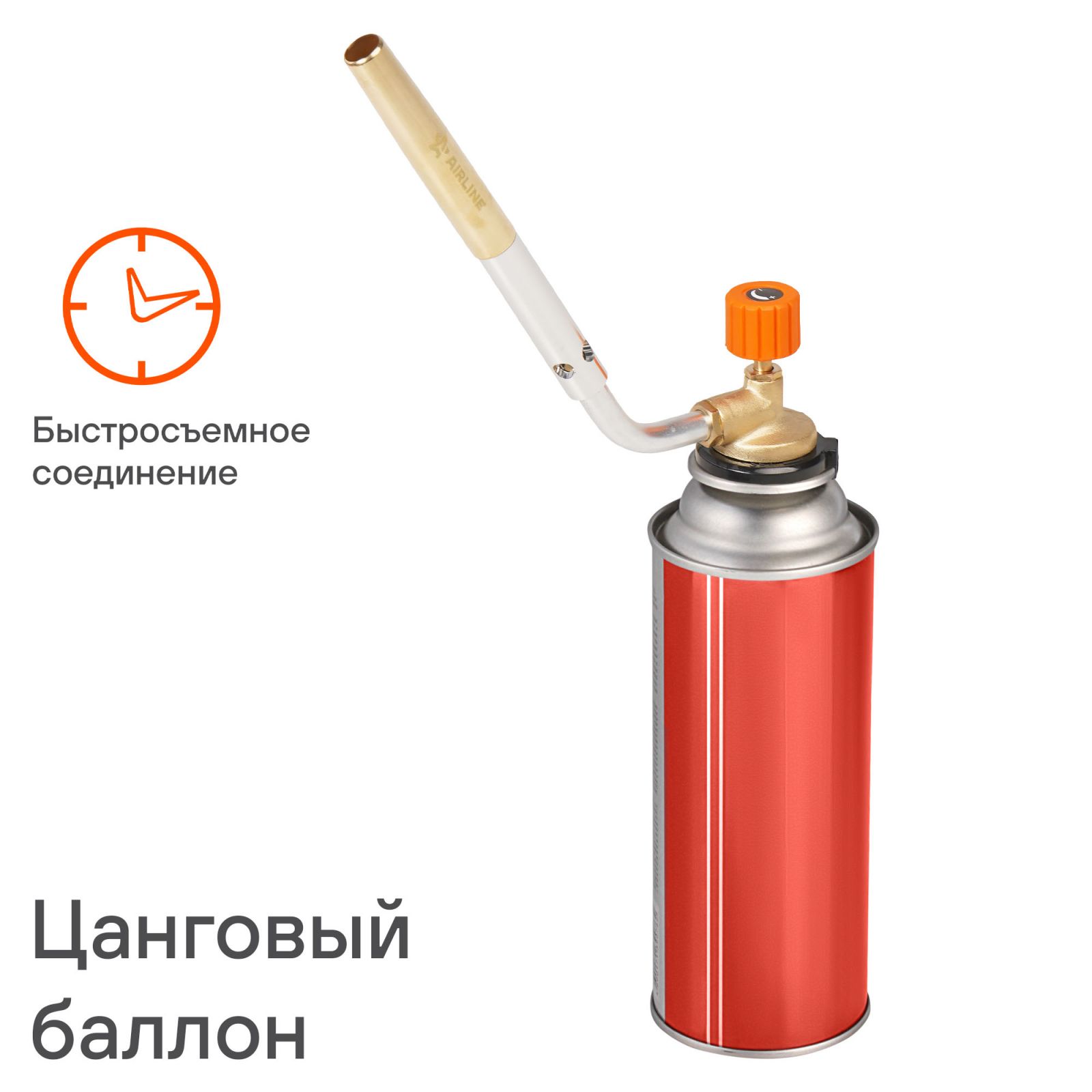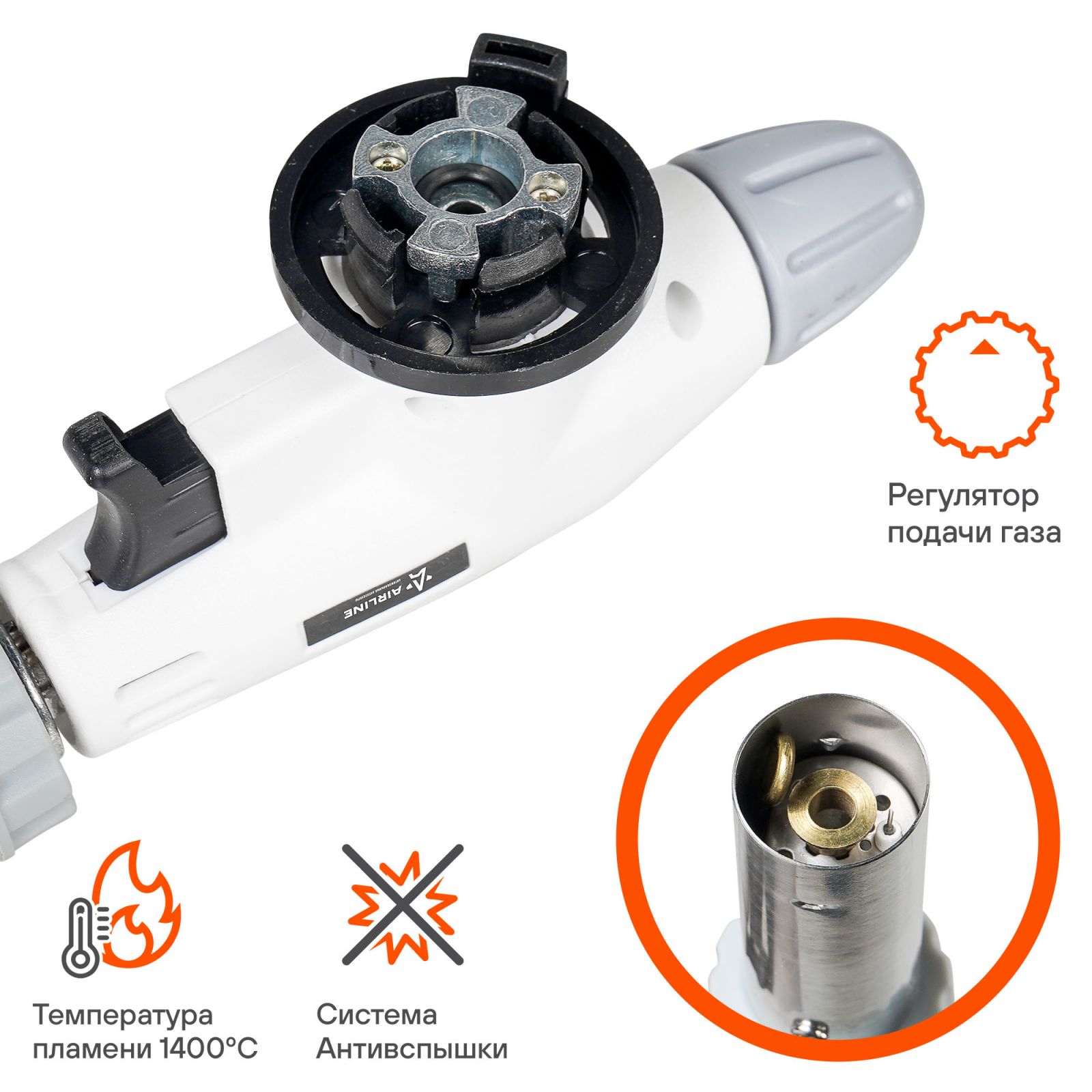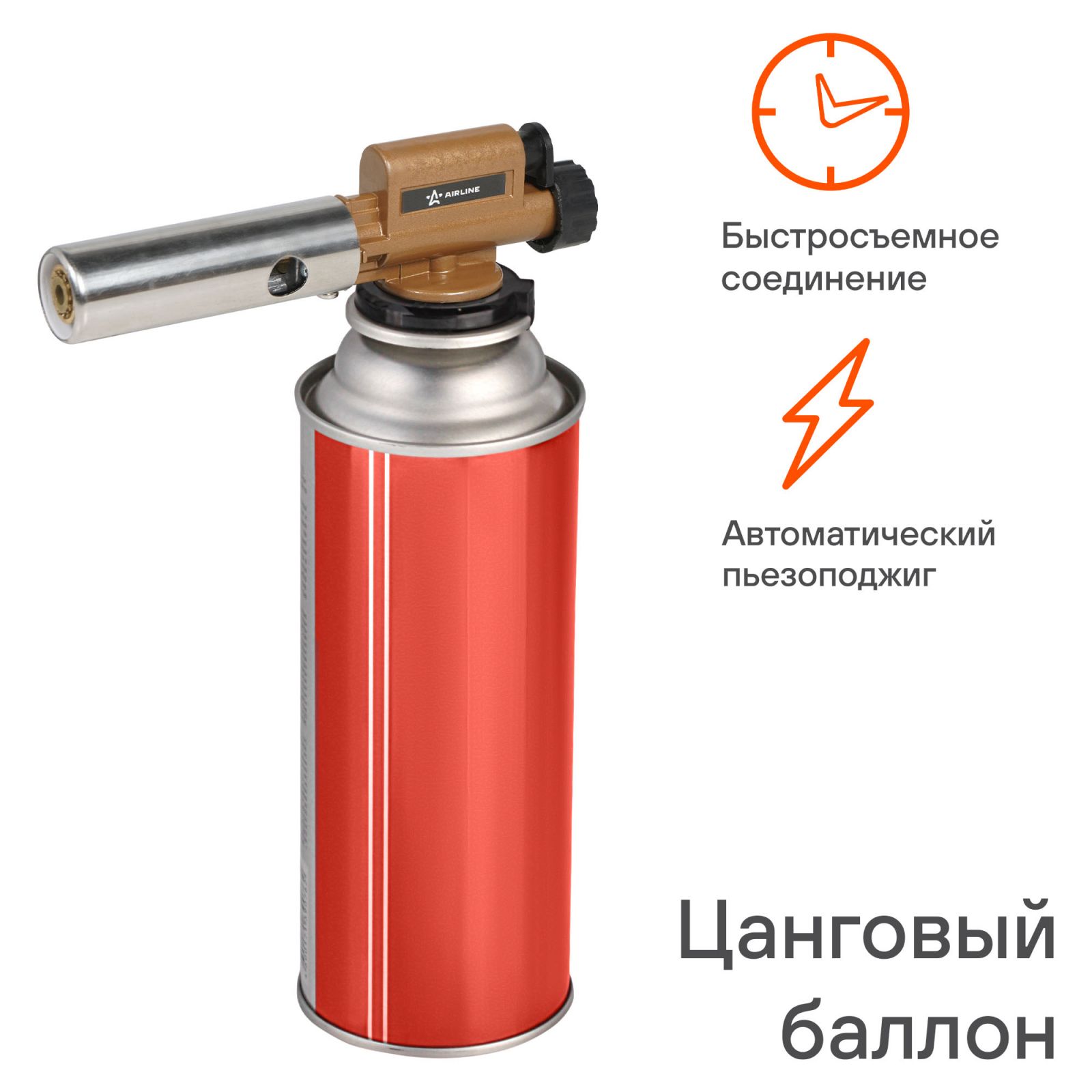 Горелка газовая на цанговый баллон, пьезоподжиг, анти-вспышка, регулятор воздуха, 20*6*4 см (AGT-03)