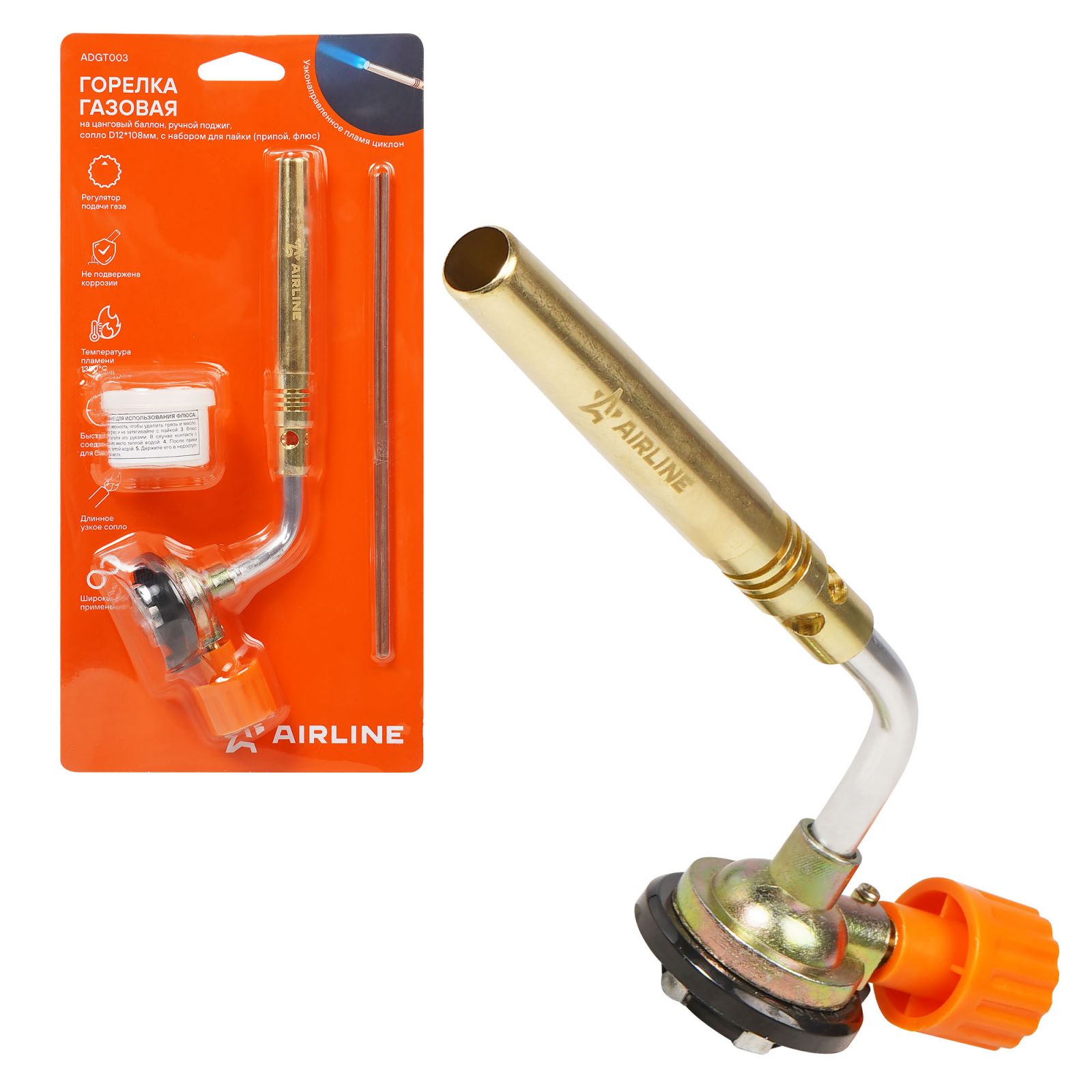 Горелка газовая на цанговый баллон, ручн.поджиг, сопло D12*108мм с набором для пайки (припой,флюс) (ADGT003)