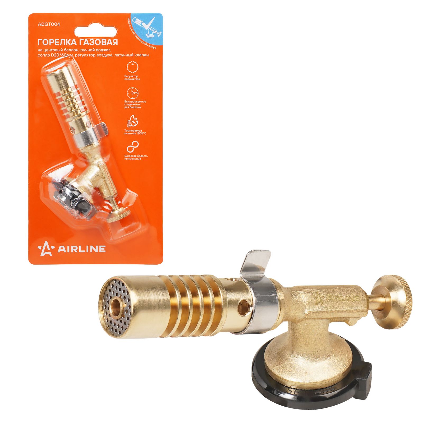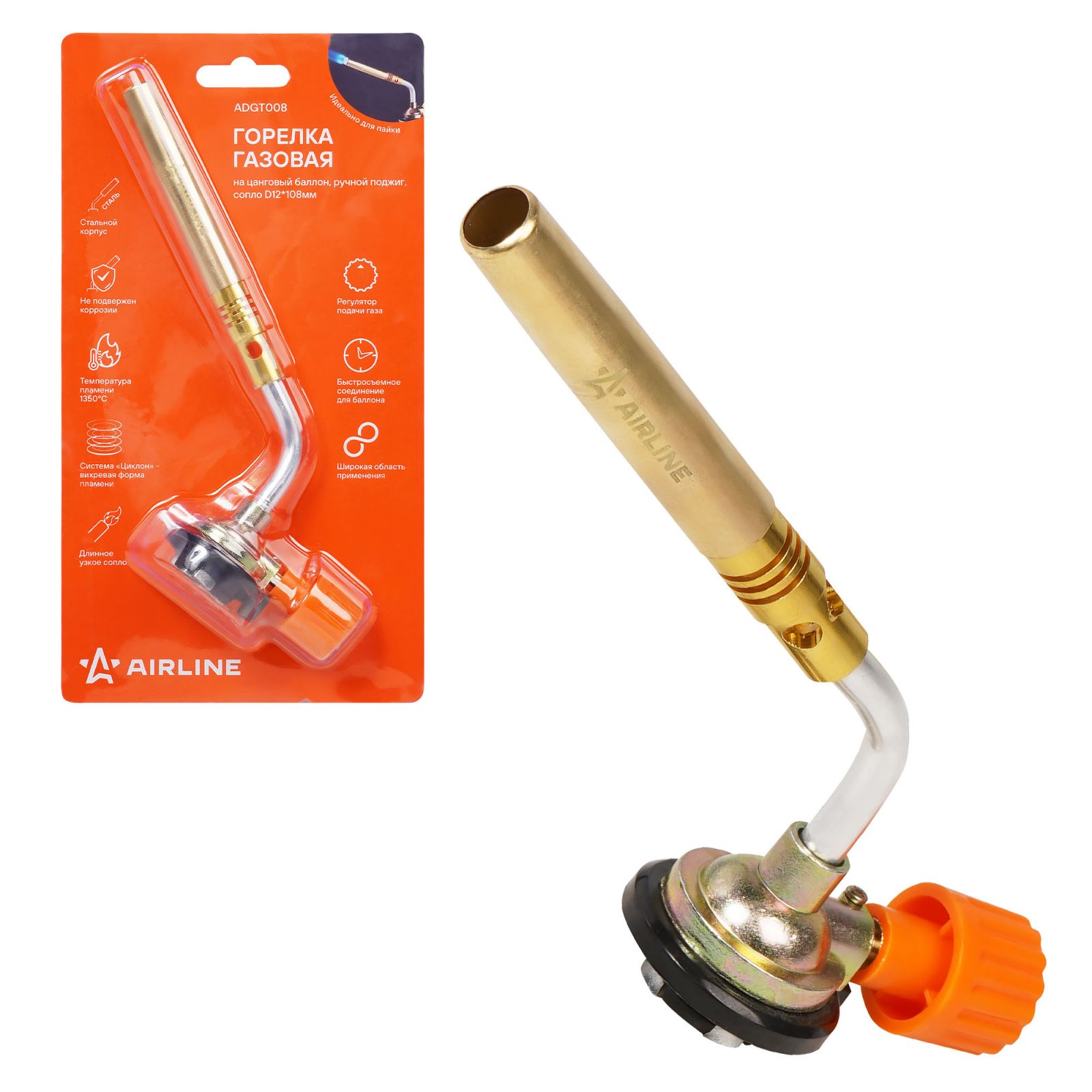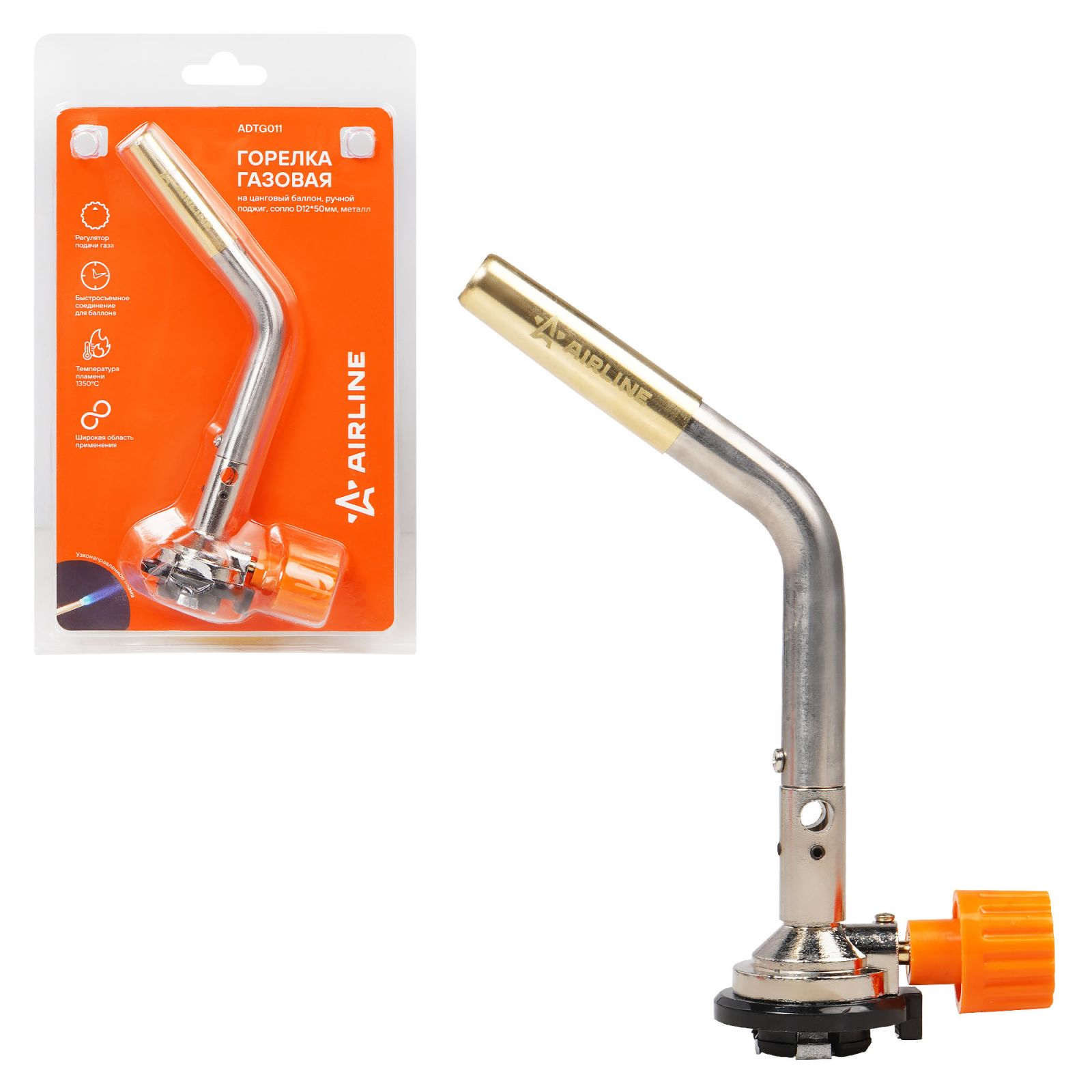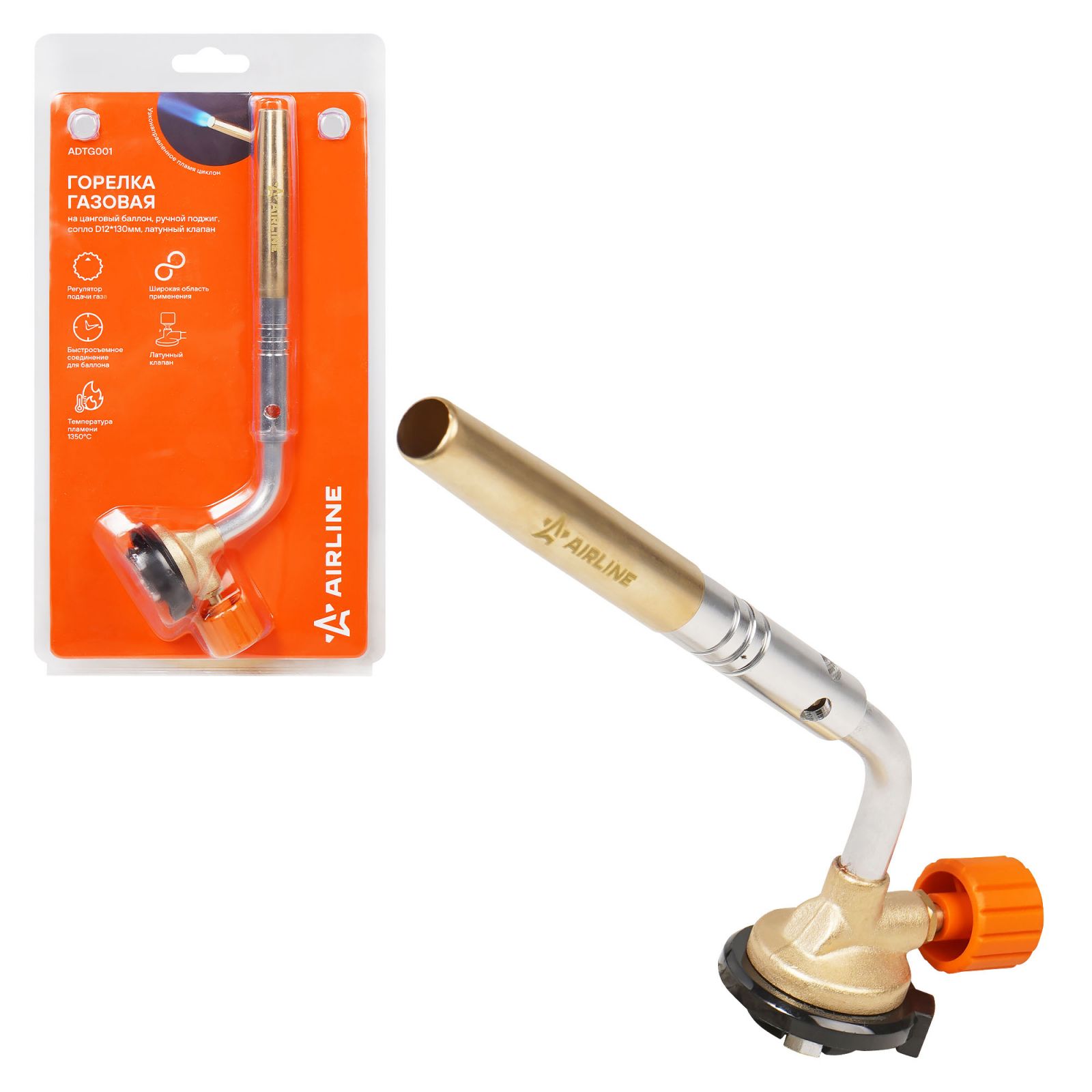 Горелка газовая на цанговый баллон, ручн.поджиг, сопло D20*60мм, регулят. воздуха, латун. клапан (ADGT004)