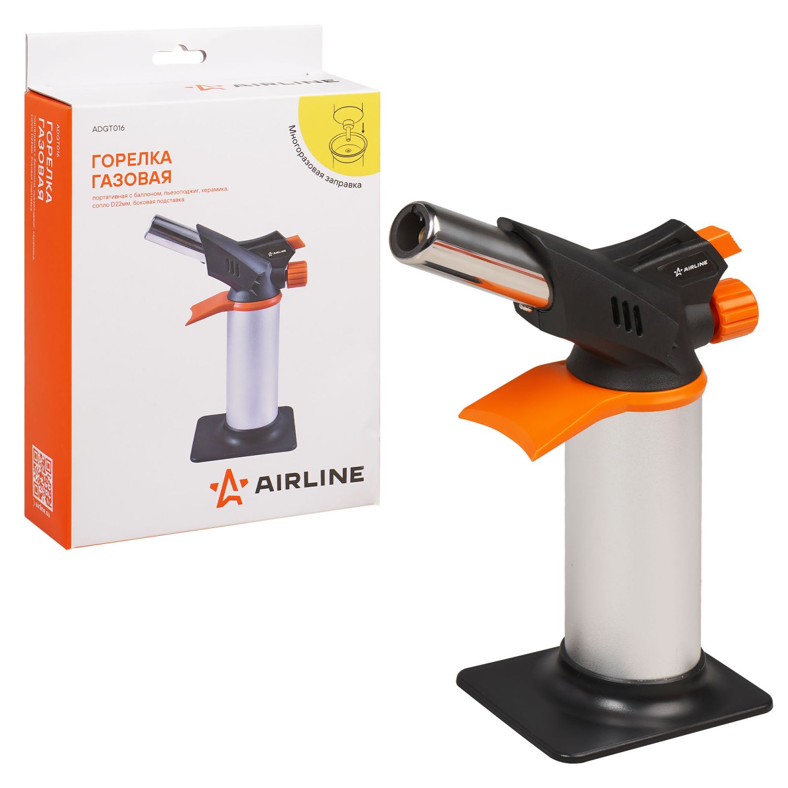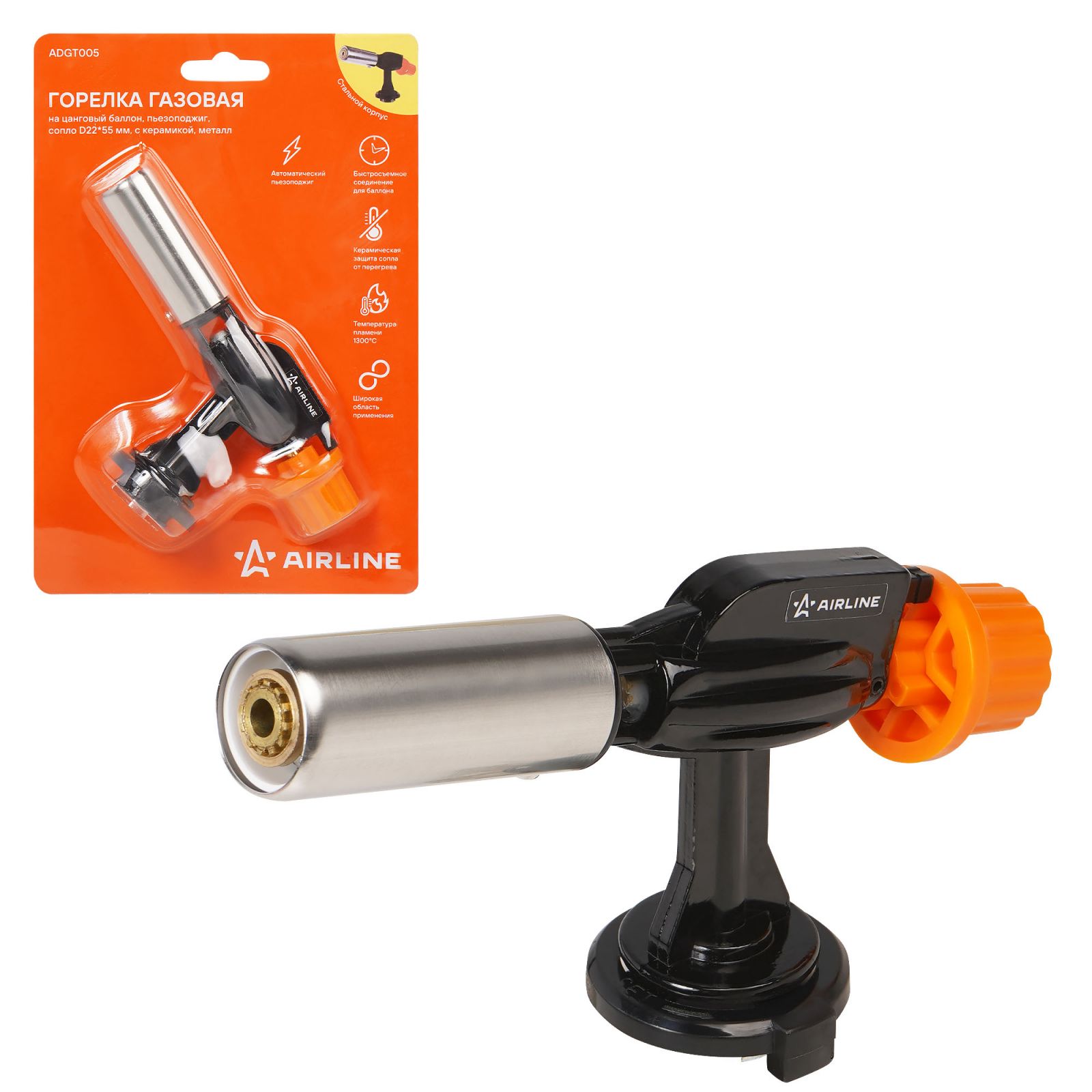 Горелка газовая, портативная с баллоном, пьезоподжиг, керамика, сопло D22мм, бок.подставка (ADGT016)
