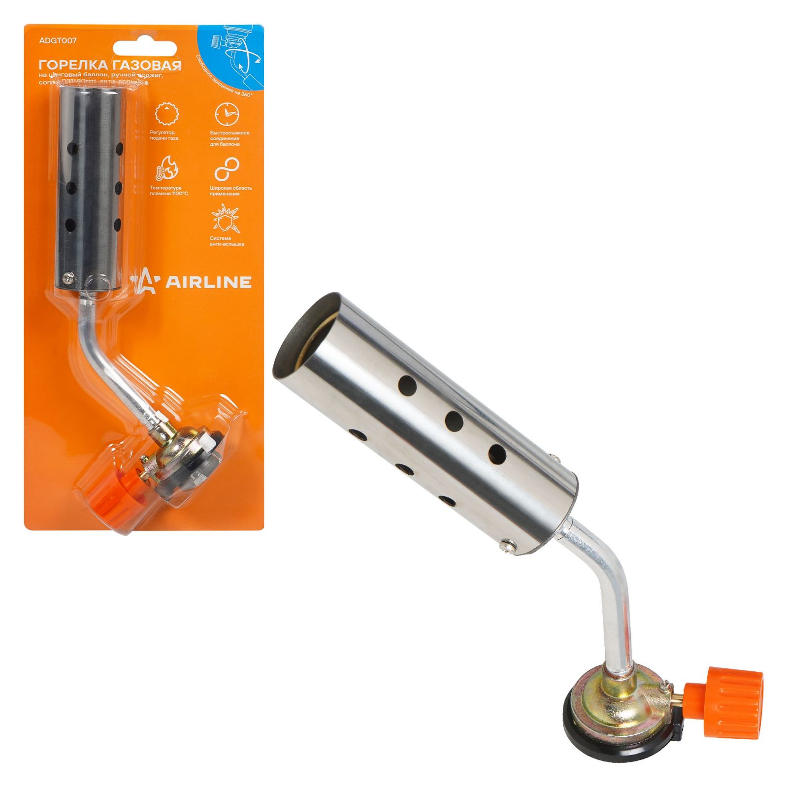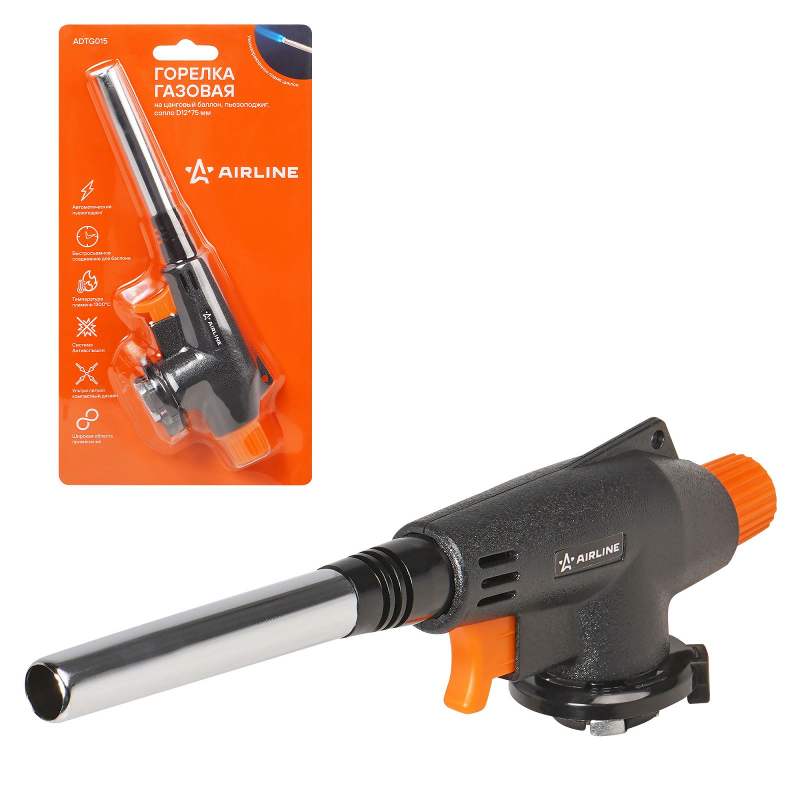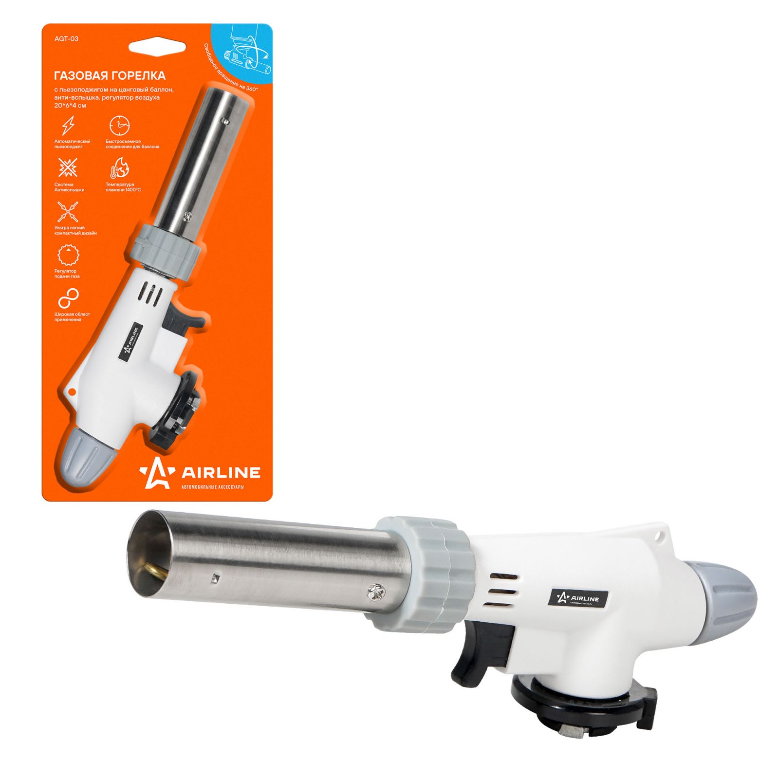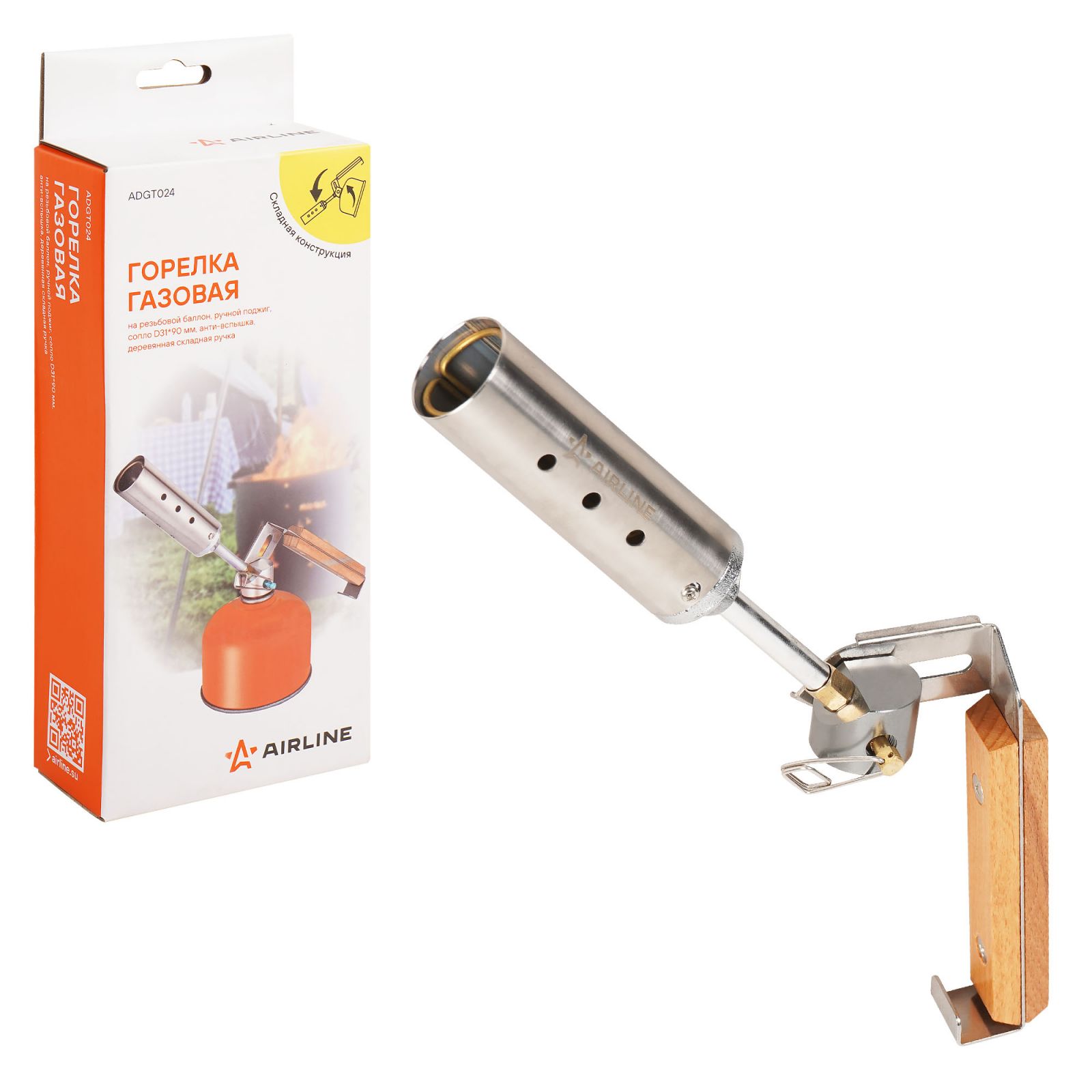 Горелка газовая на резьбовой баллон, пьезоподжиг, анти-вспышка, 16*5,5*3 см (AGT-S-03)