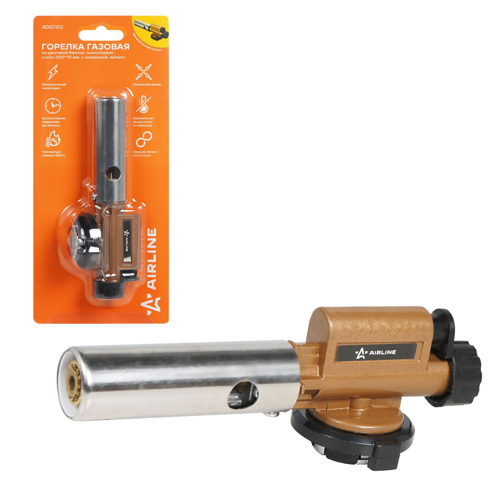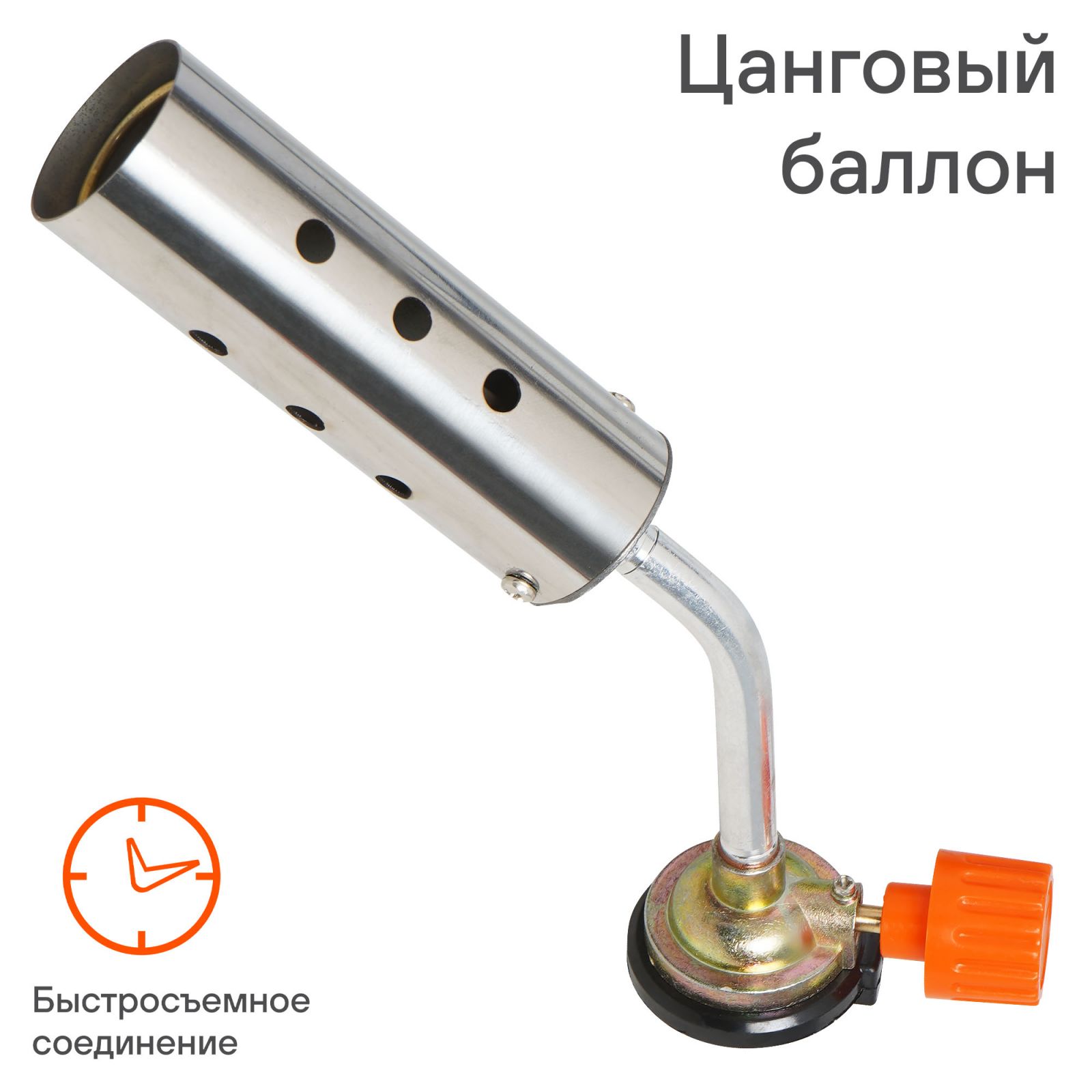 Горелка газовая на цанговый баллон, пьезоподжиг, сопло D20*70 мм, с керамикой, металл (ADGT012)