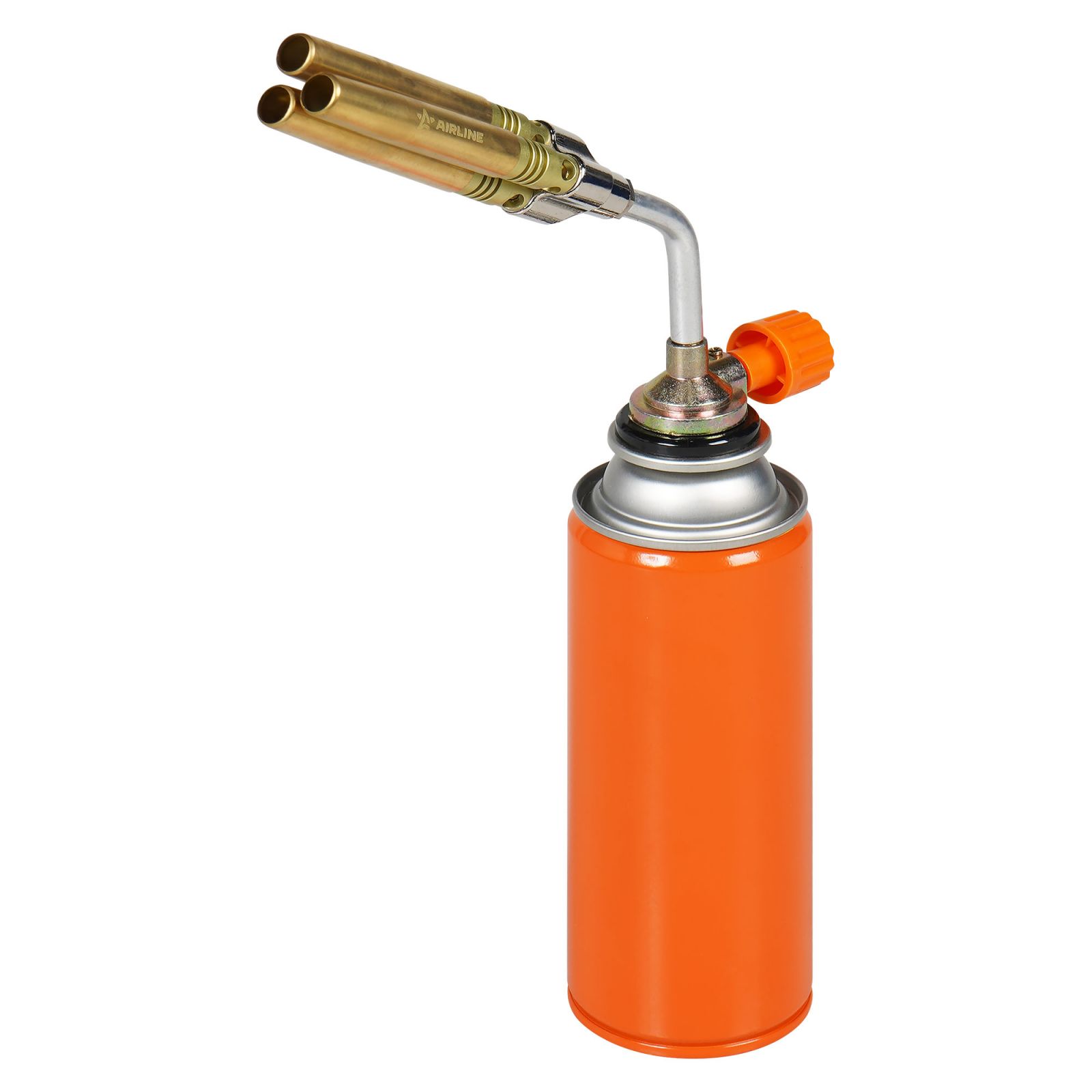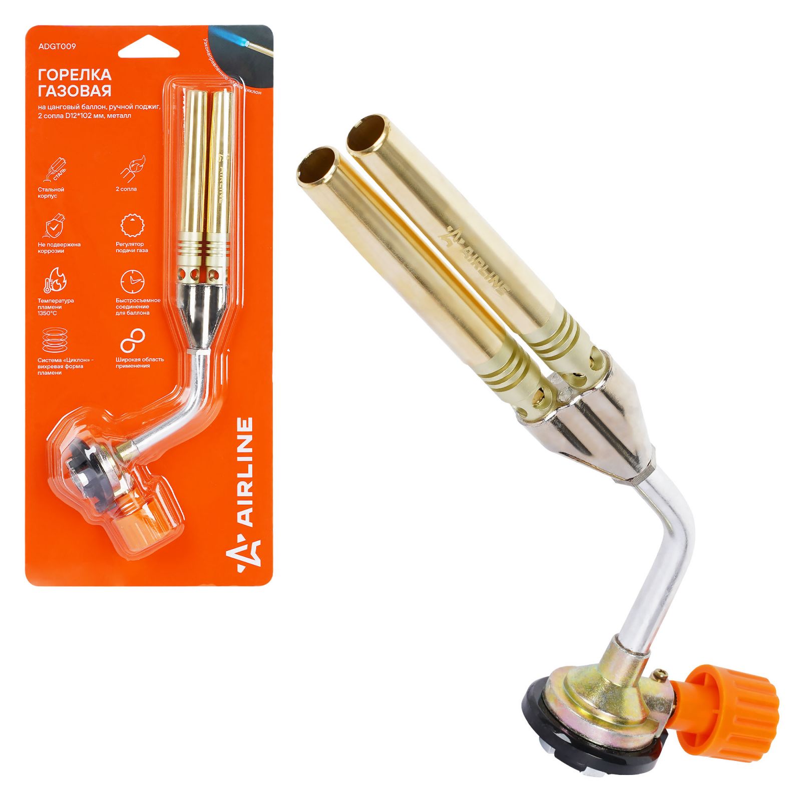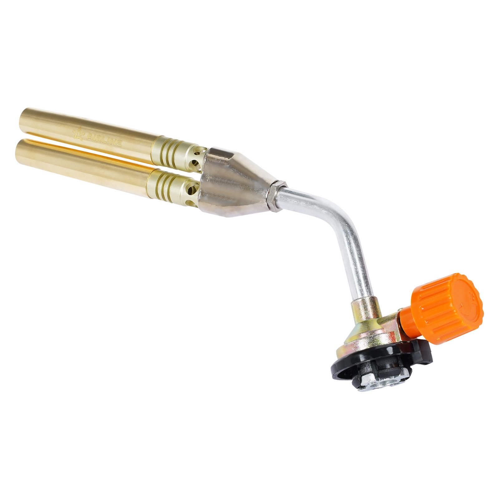Горелка газовая на цанговый баллон, ручн.поджиг, 2 сопла D12*102 мм, металл (ADGT009)