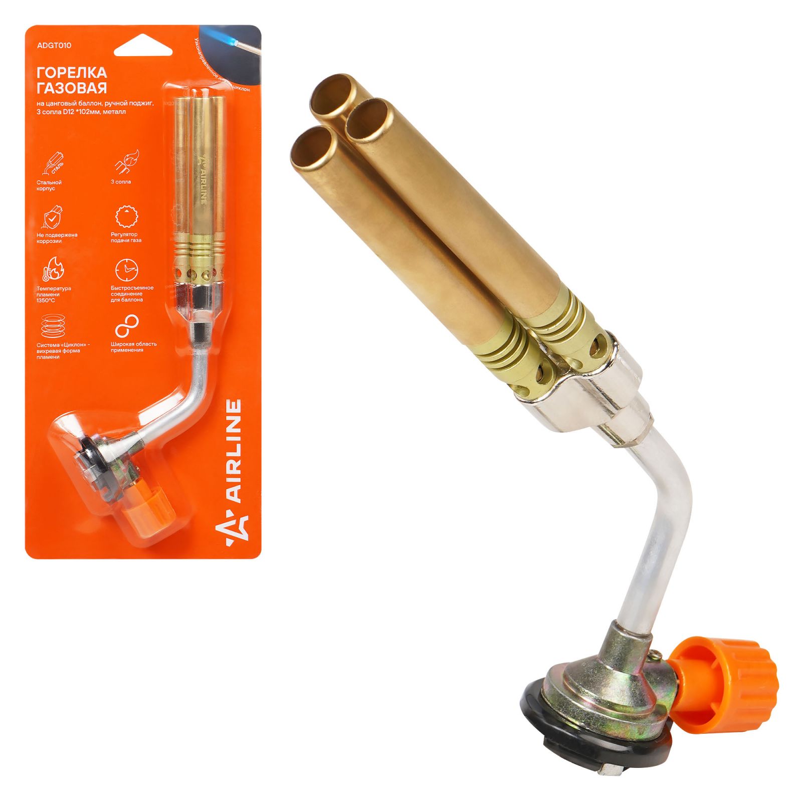 Горелка газовая на цанговый баллон, ручн.поджиг, 3 сопла D12 *102мм, металл (ADGT010)