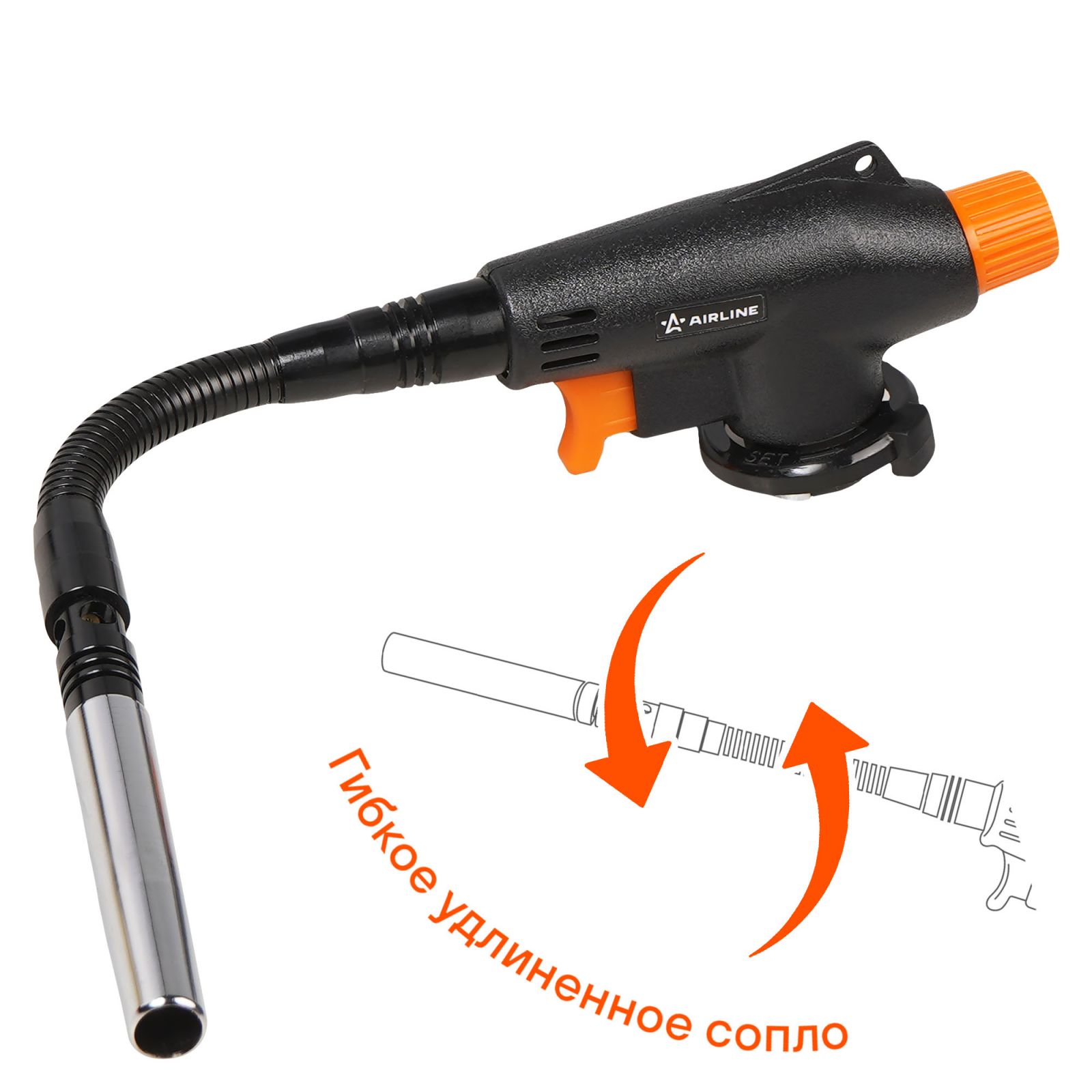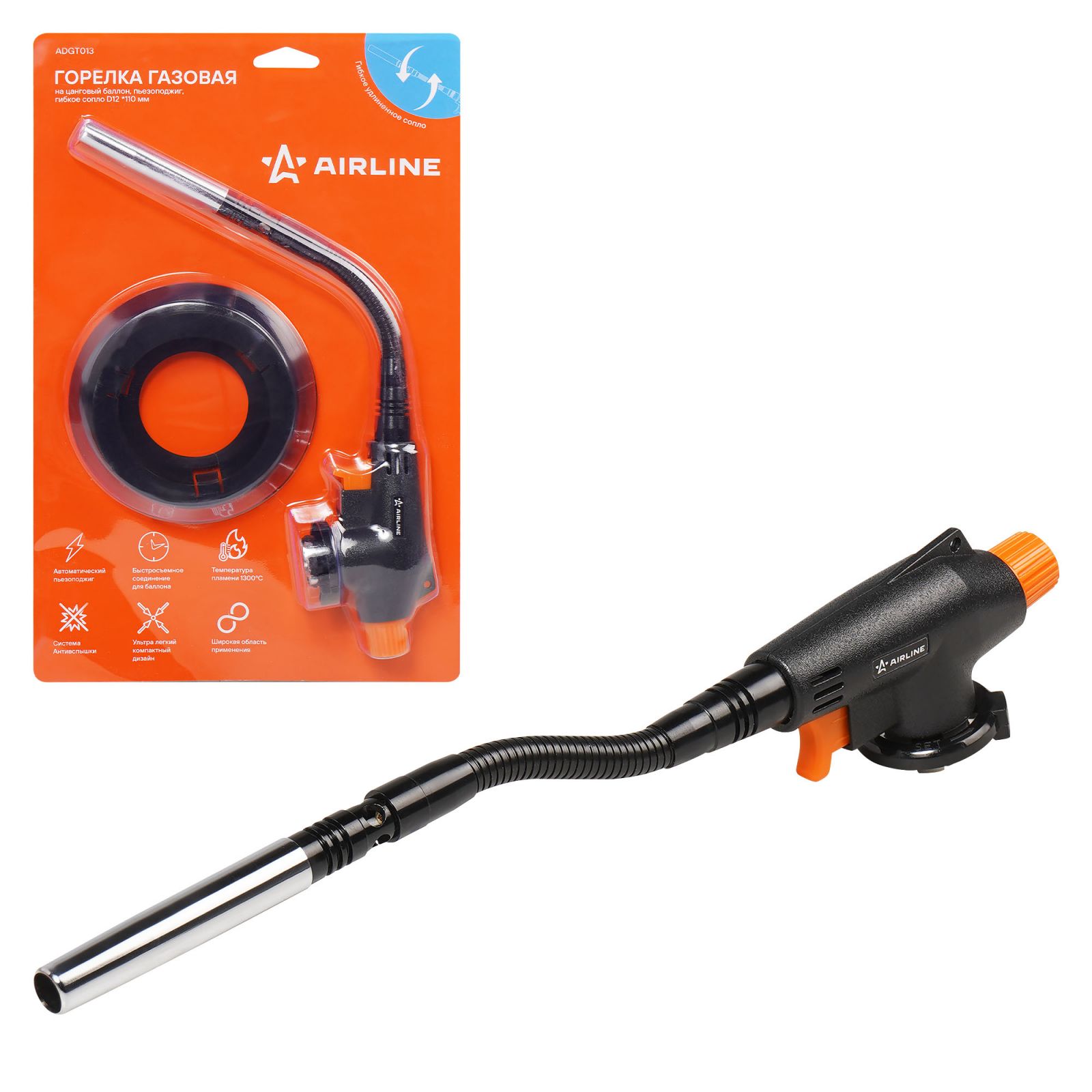 Горелка газовая на цанговый баллон, пьезоподжиг, гибкое сопло D12 *110 мм (ADGT013)