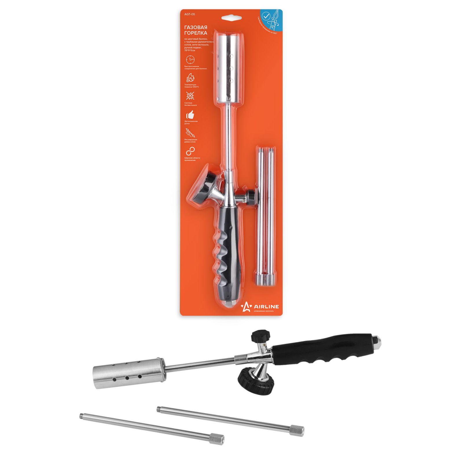 Горелка газовая на цанговый баллон, с трубными удлинителями сопла, анти-вспышка, ручной поджиг, 78*9*5 см (AGT-05)