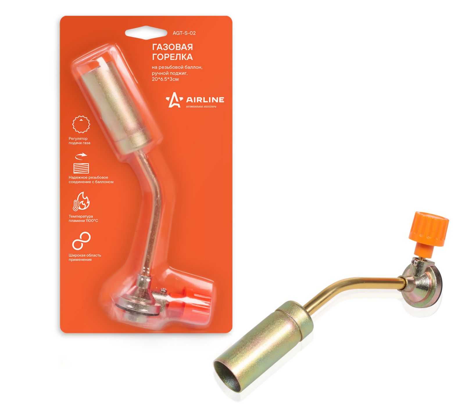Горелка газовая на резьбовой баллон, ручной поджиг, 20*6,5*3 см (AGT-S-02)