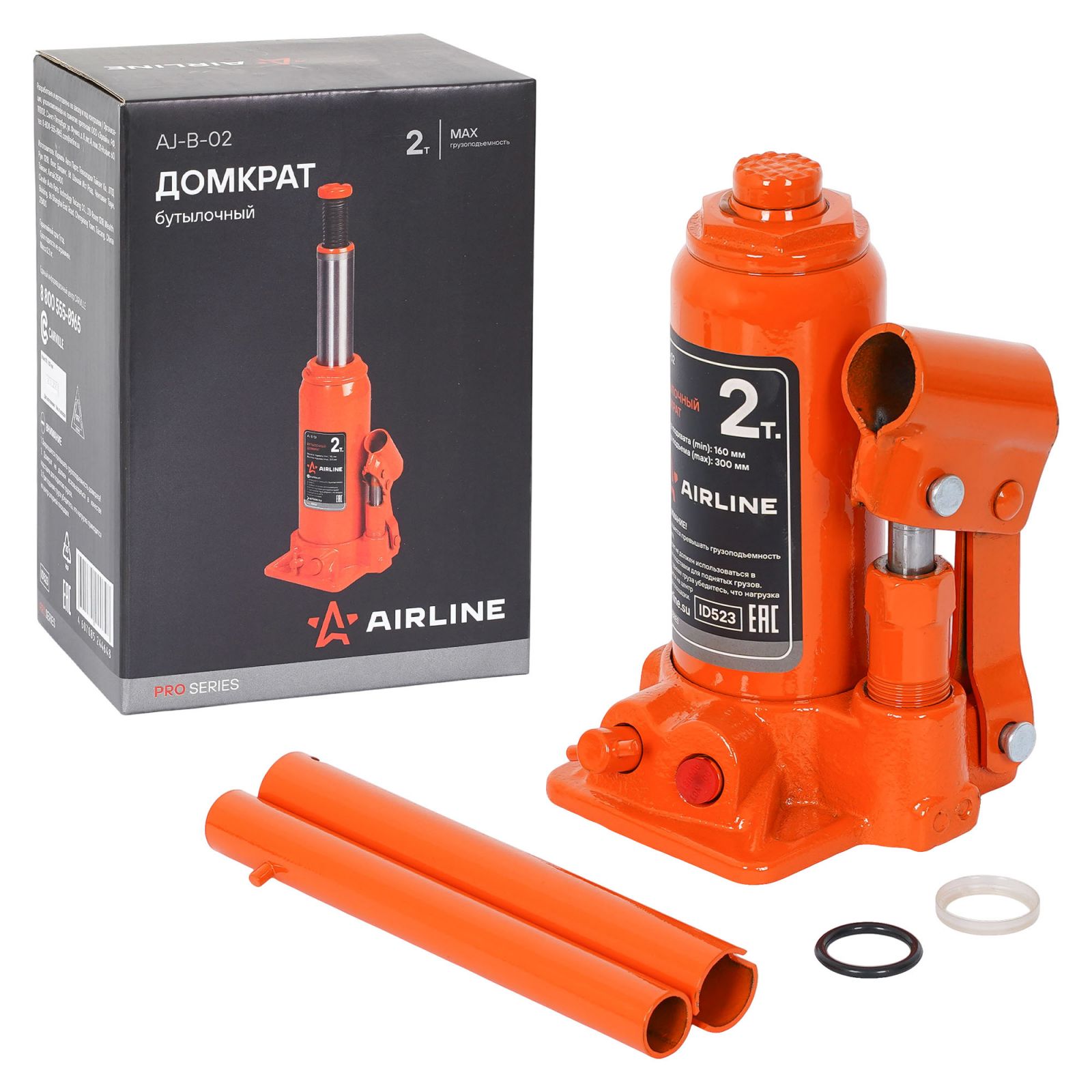 Домкрат бутылочный 2т 160-300мм (AJ-B-02)