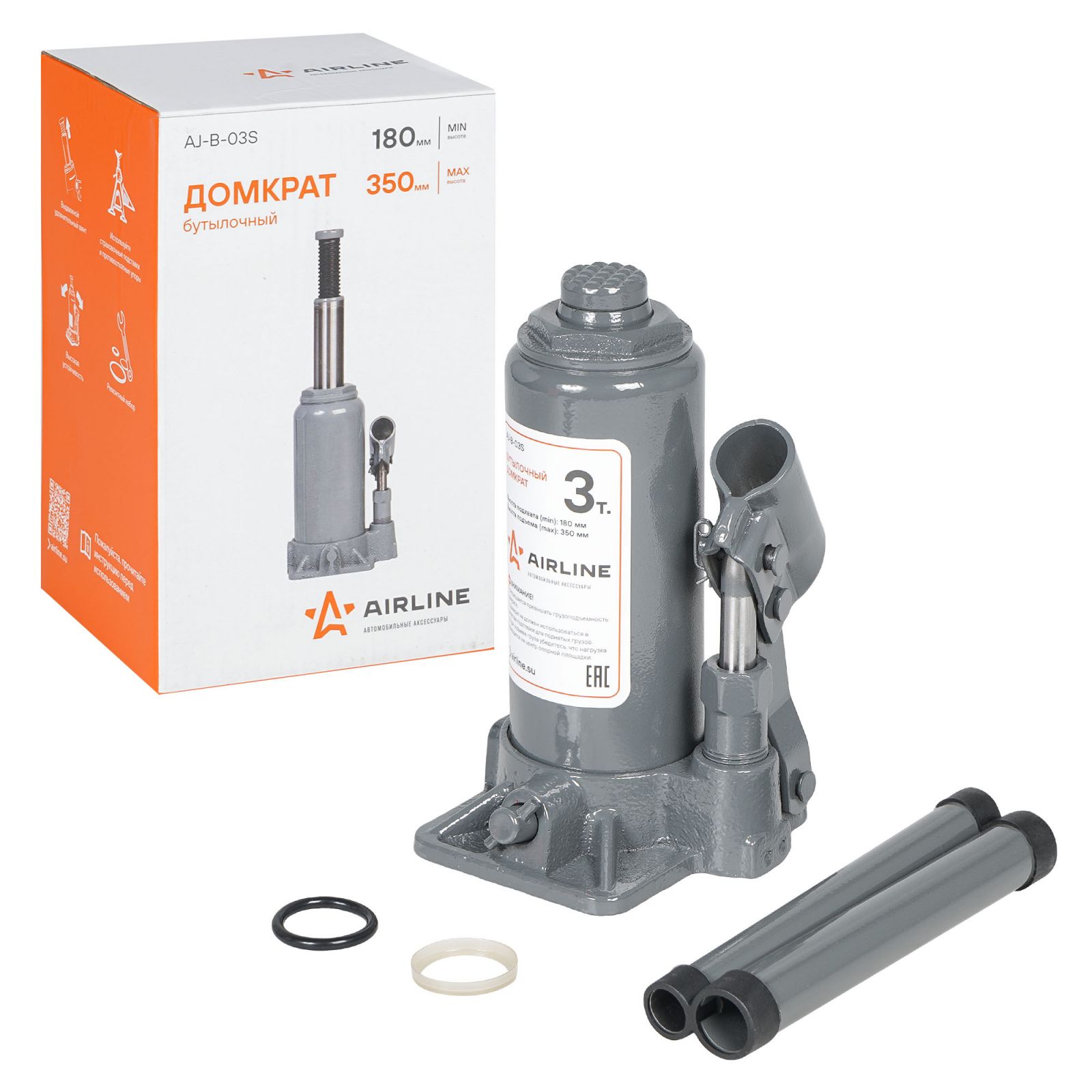 Домкрат бутылочный 3т 180-350мм (AJ-B-03S)