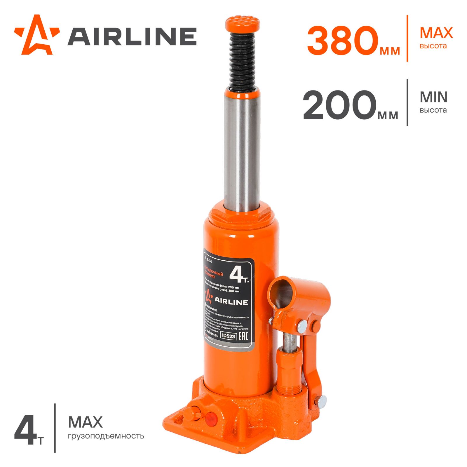 Домкрат бутылочный 4т 200-380мм (AJ-B-04)