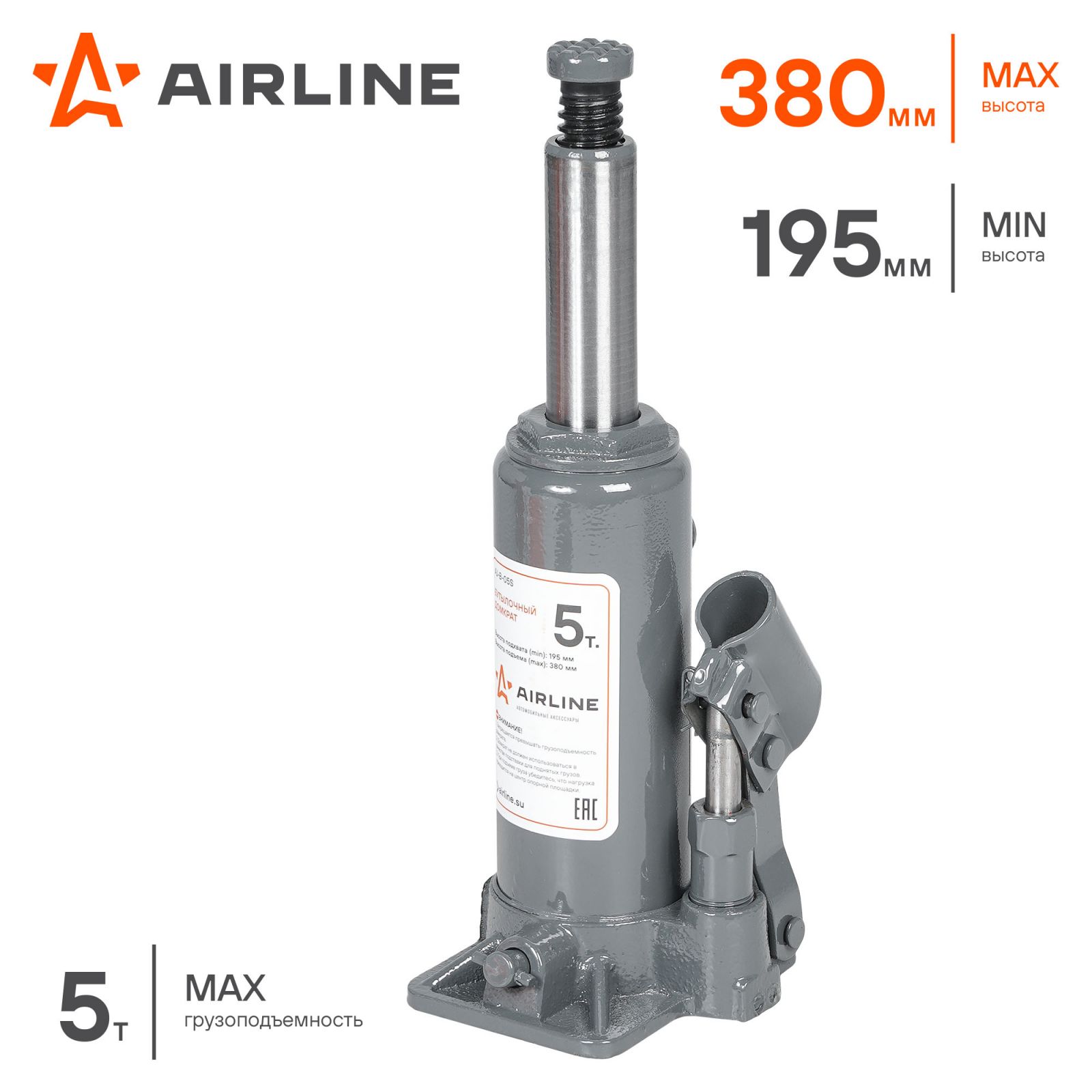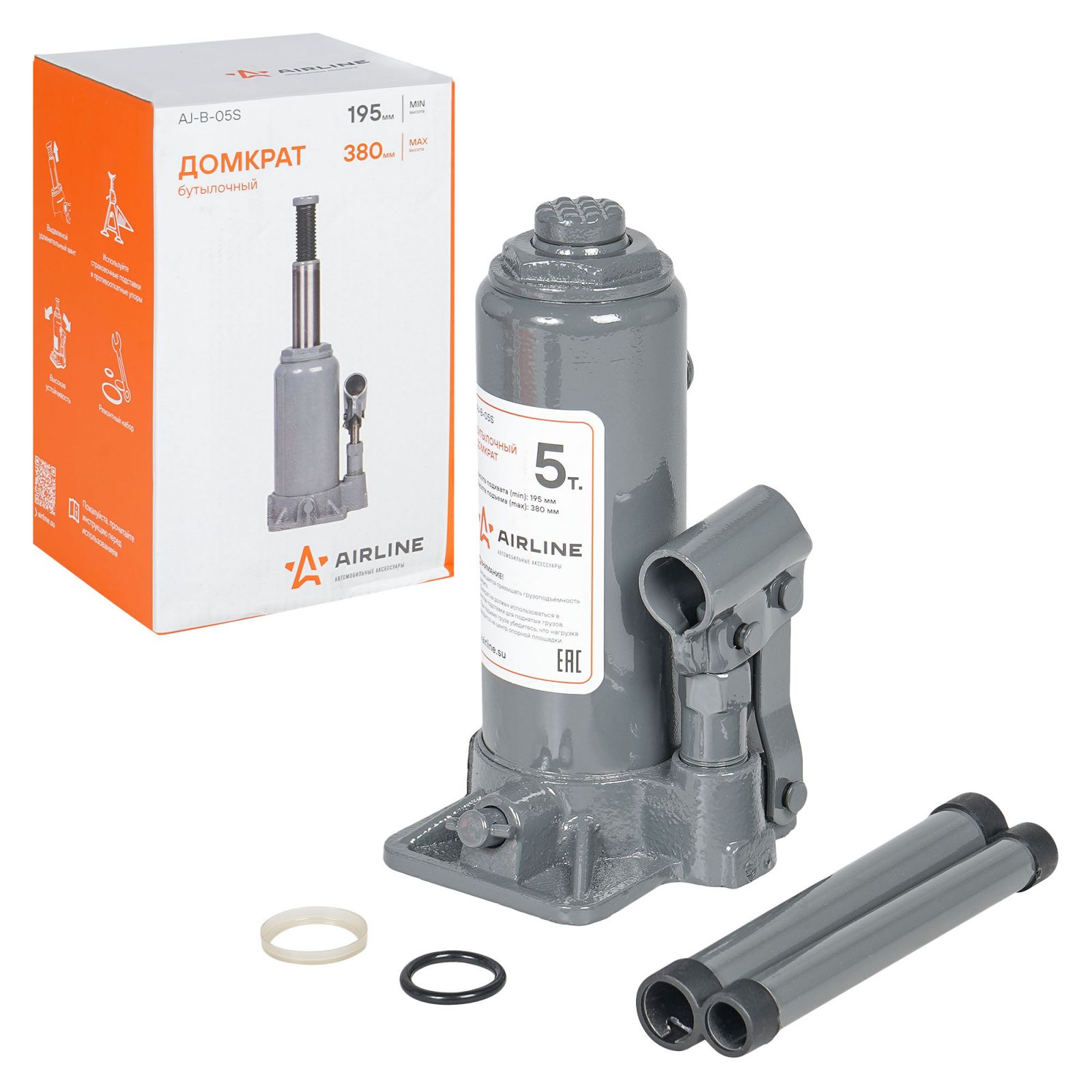 Домкрат бутылочный 5т 195-380мм (AJ-B-05S)