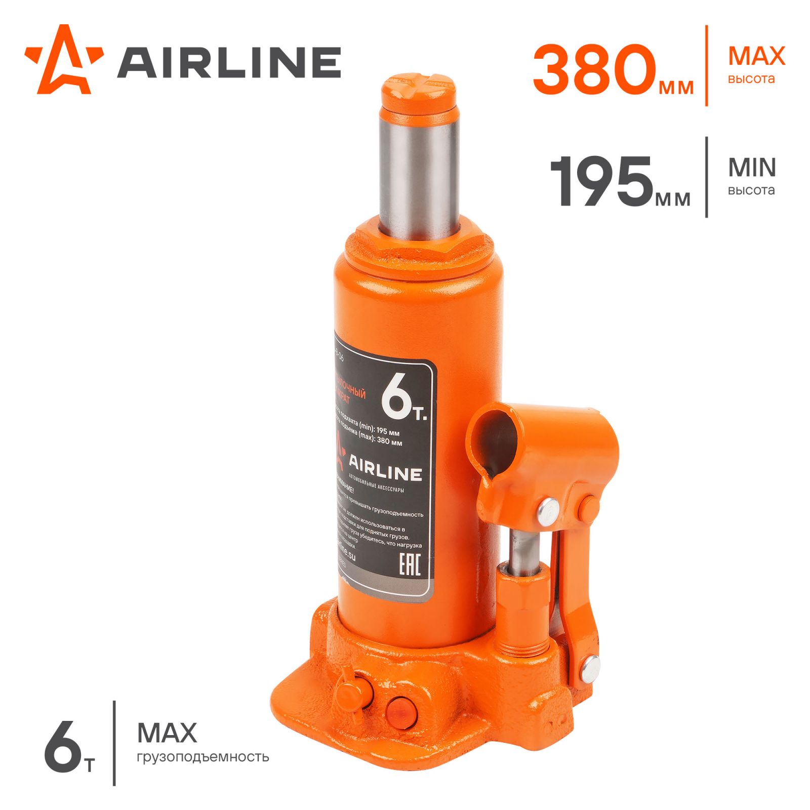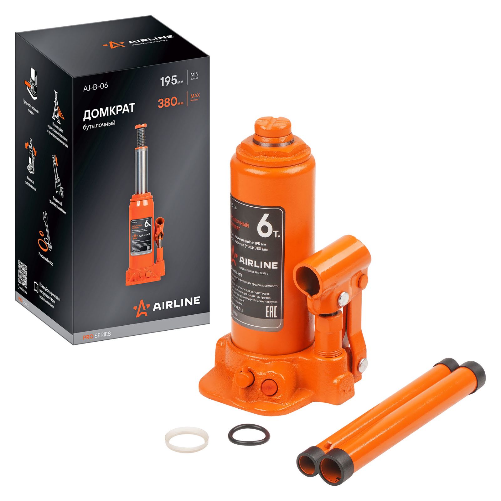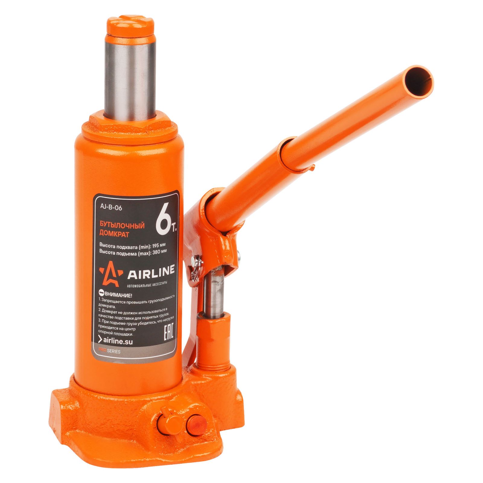 Домкрат бутылочный 6т 195-380мм PRO (AJ-B-06)