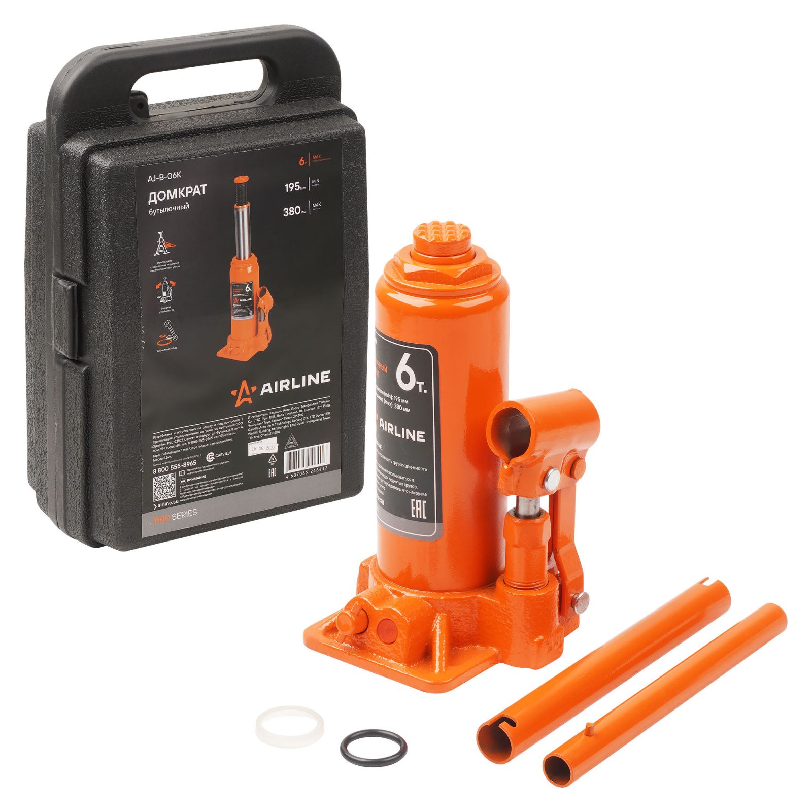 Домкрат бутылочный 6т 195-380мм PRO кейс (AJ-B-06K)