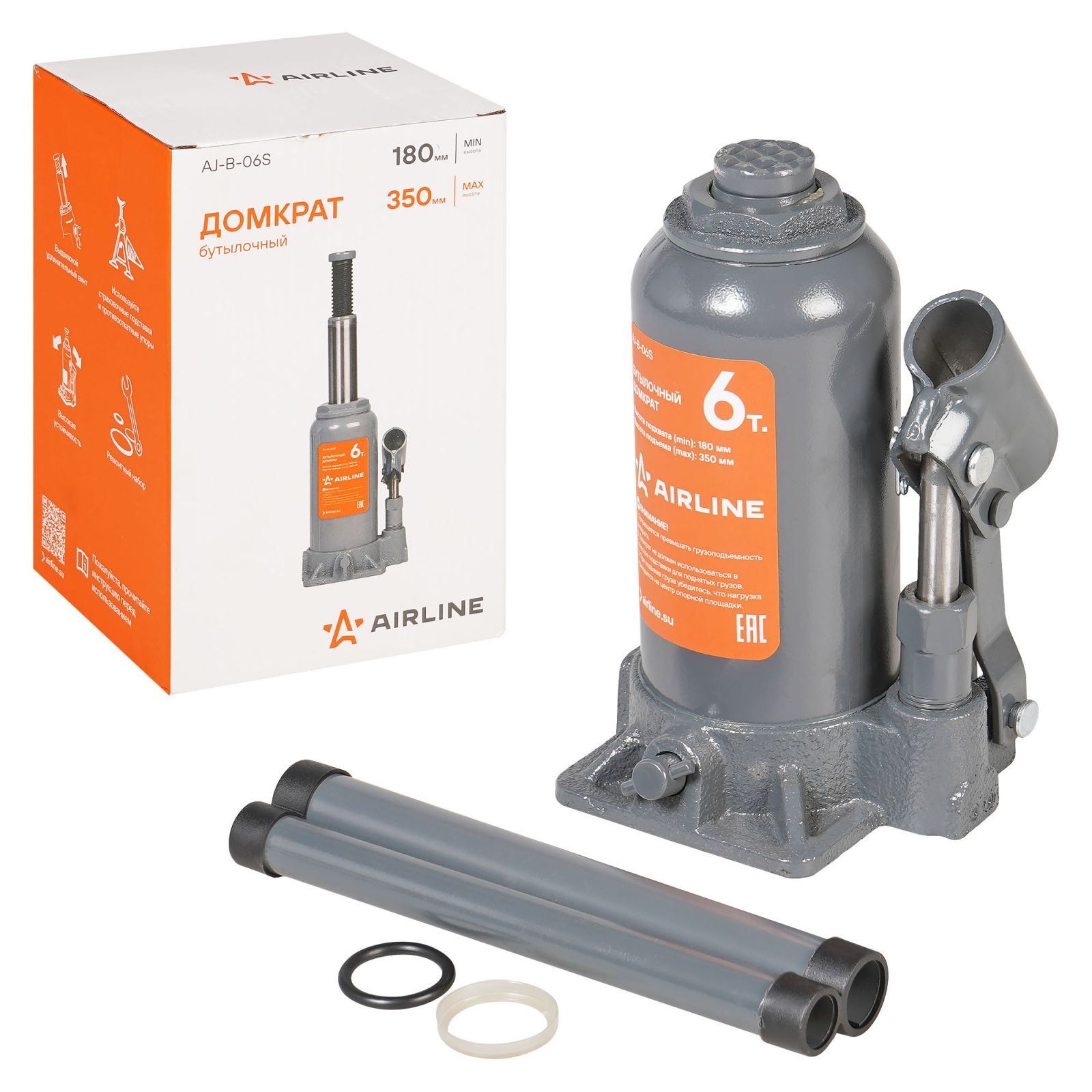 Домкрат бутылочный 6т 180-350мм (AJ-B-06S)