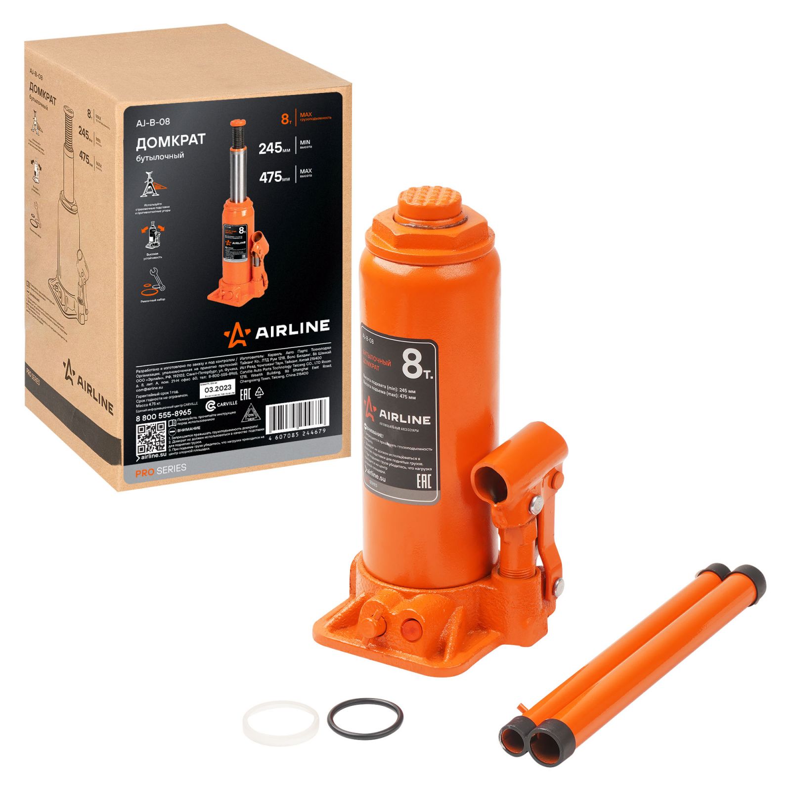 Домкрат бутылочный 8т 245-475мм PRO (AJ-B-08)