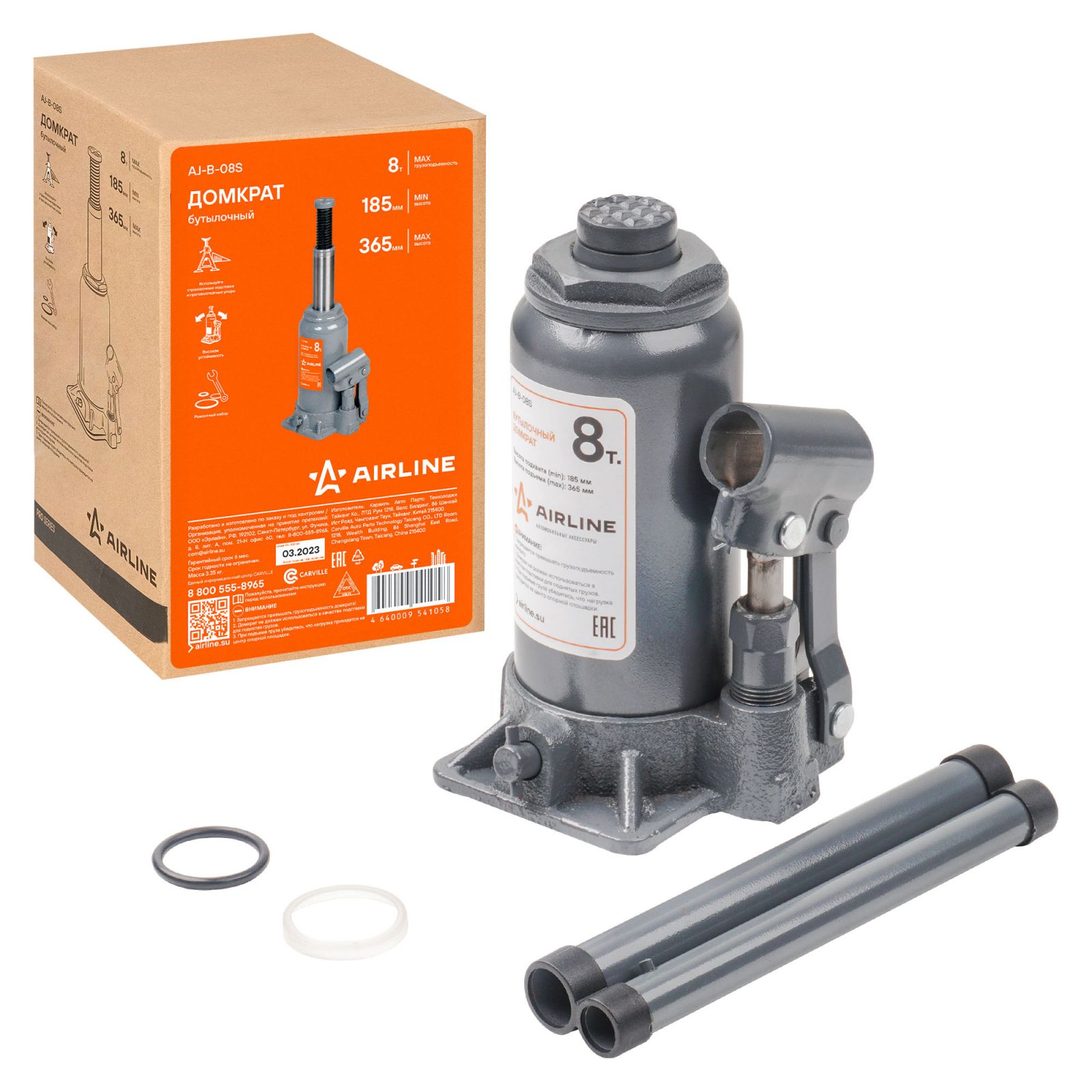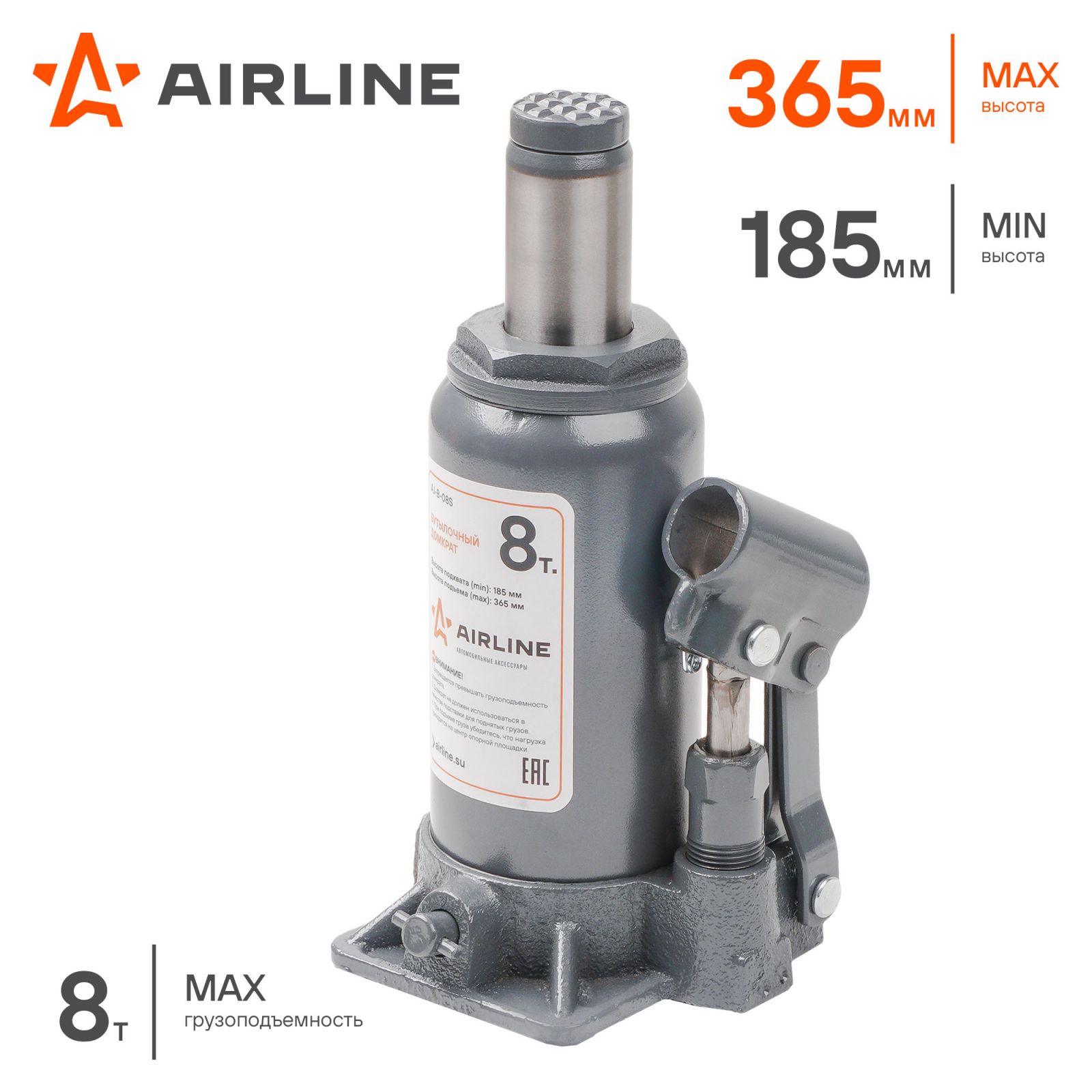 Домкрат бутылочный 8т 185-365мм (AJ-B-08S)