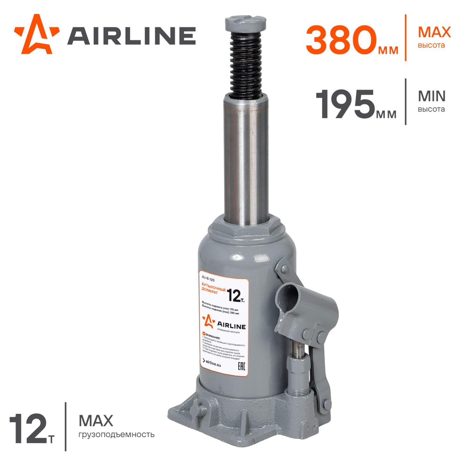 Домкрат бутылочный 12т 195-380мм (AJ-B-12S)