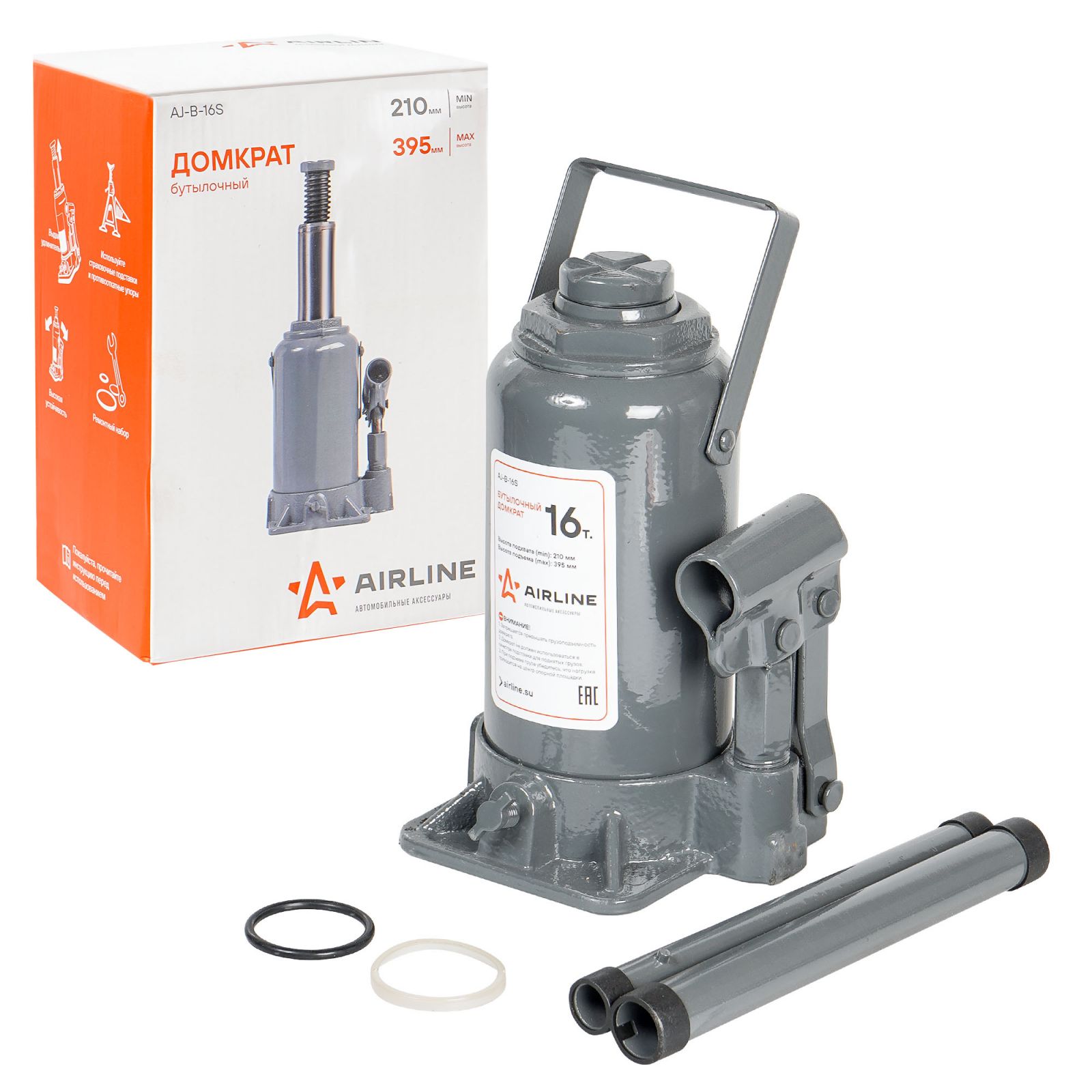Домкрат бутылочный 16т 210-395мм (AJ-B-16S)