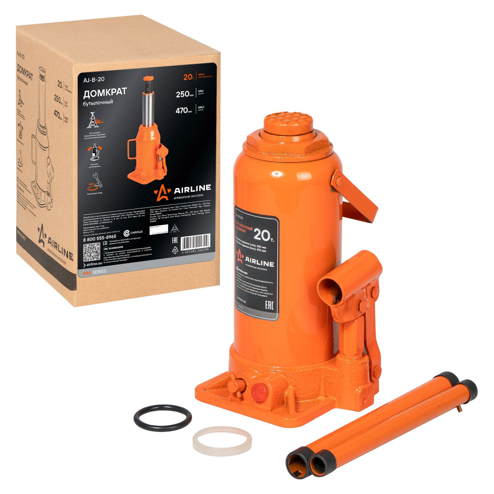 Домкрат бутылочный 20т 250-470мм PRO (AJ-B-20)