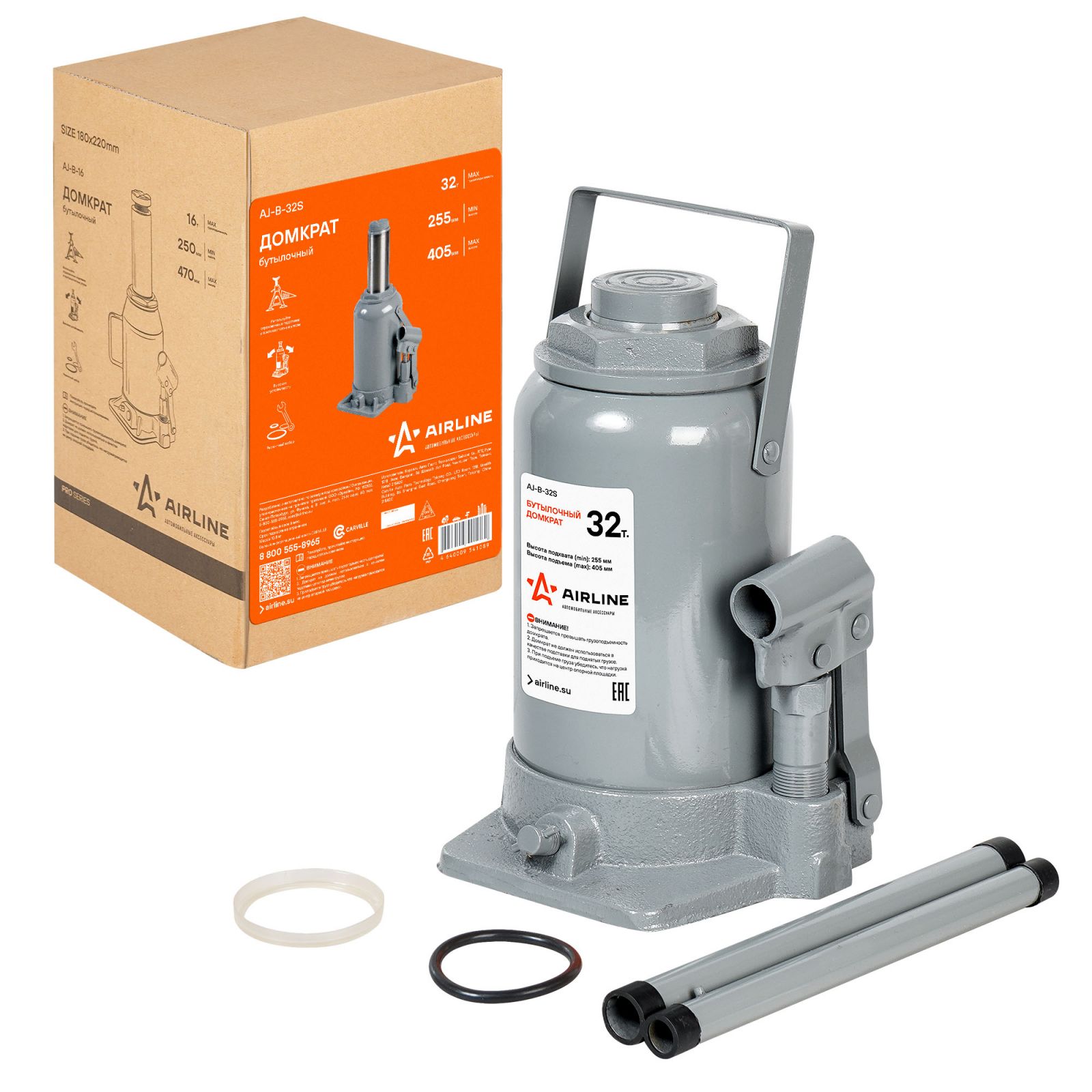 Домкрат бутылочный 32т 255-405мм (AJ-B-32S)