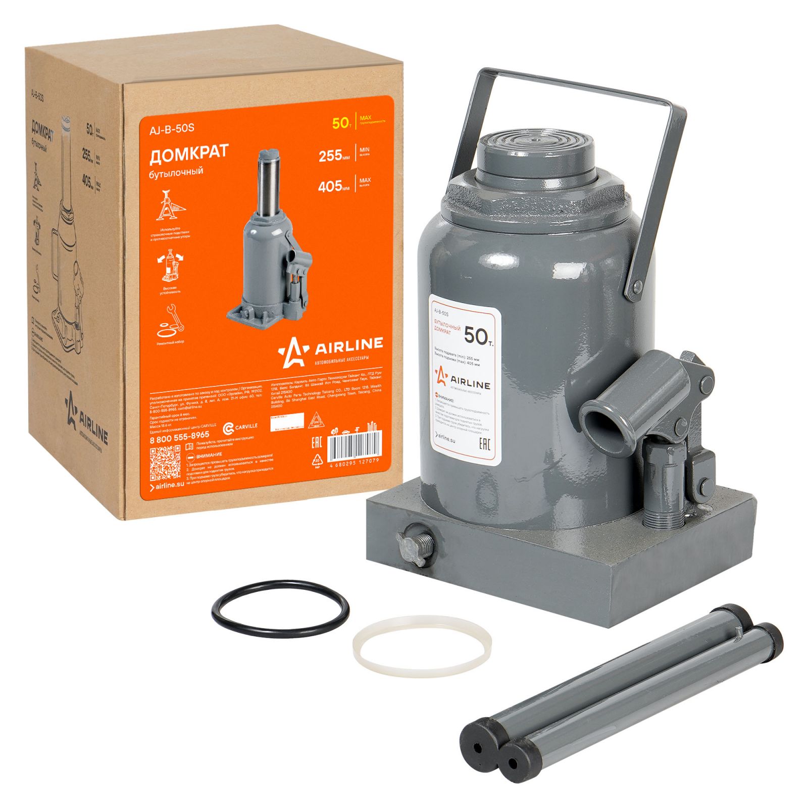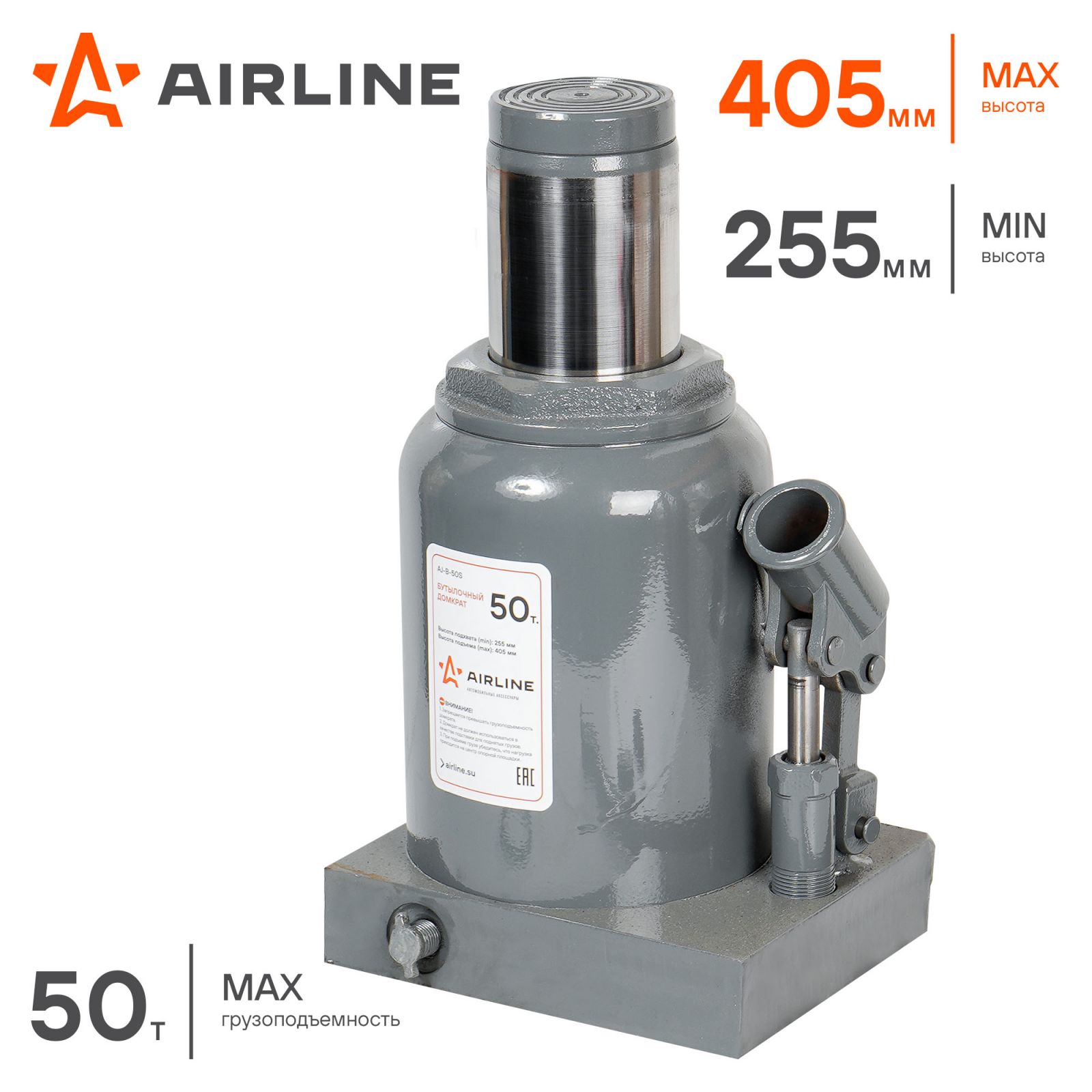 Домкрат бутылочный 50т 255-405мм (AJ-B-50S)