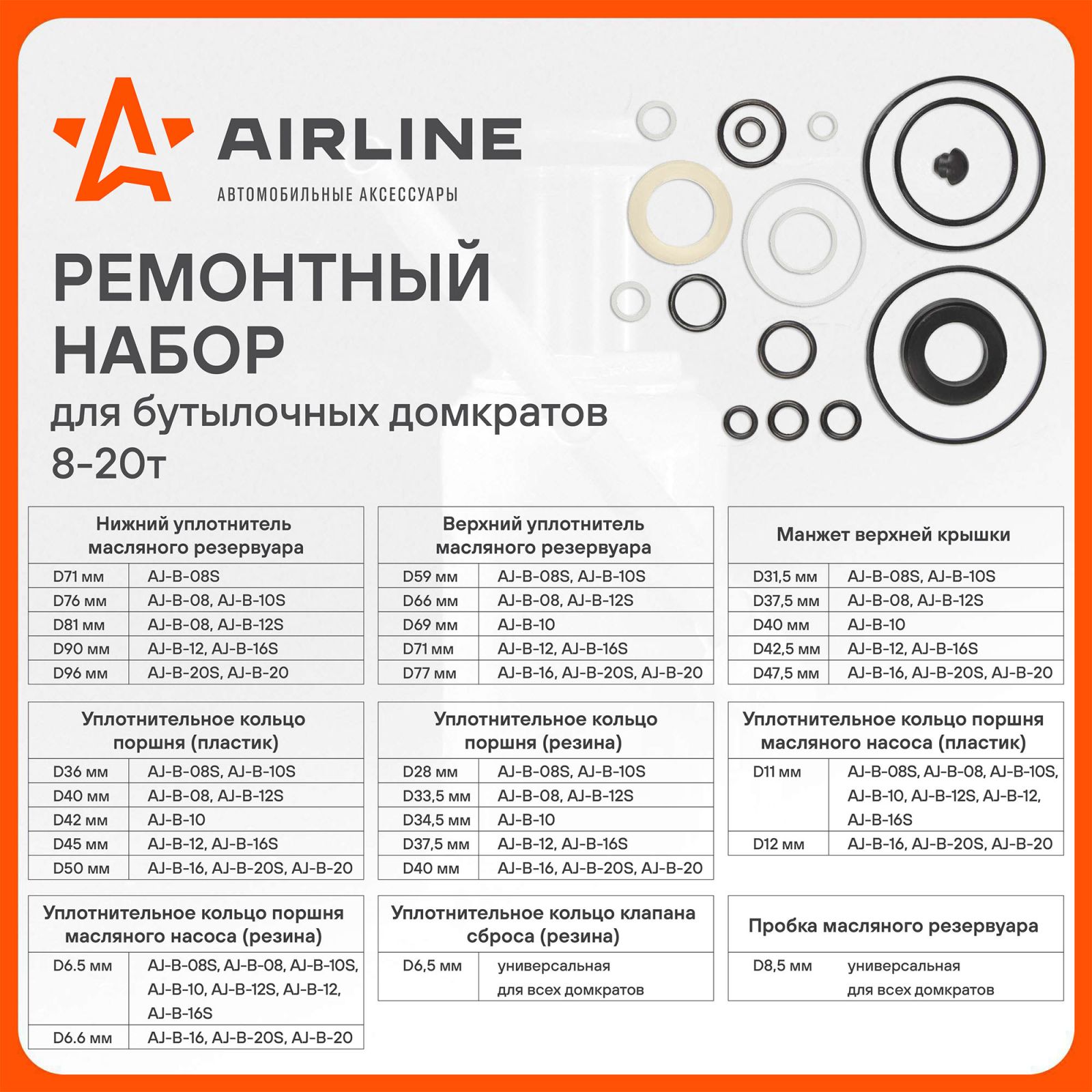 Комплект ремонтный для бутылочных домкратов универсальный (8-20т) (AJB002)