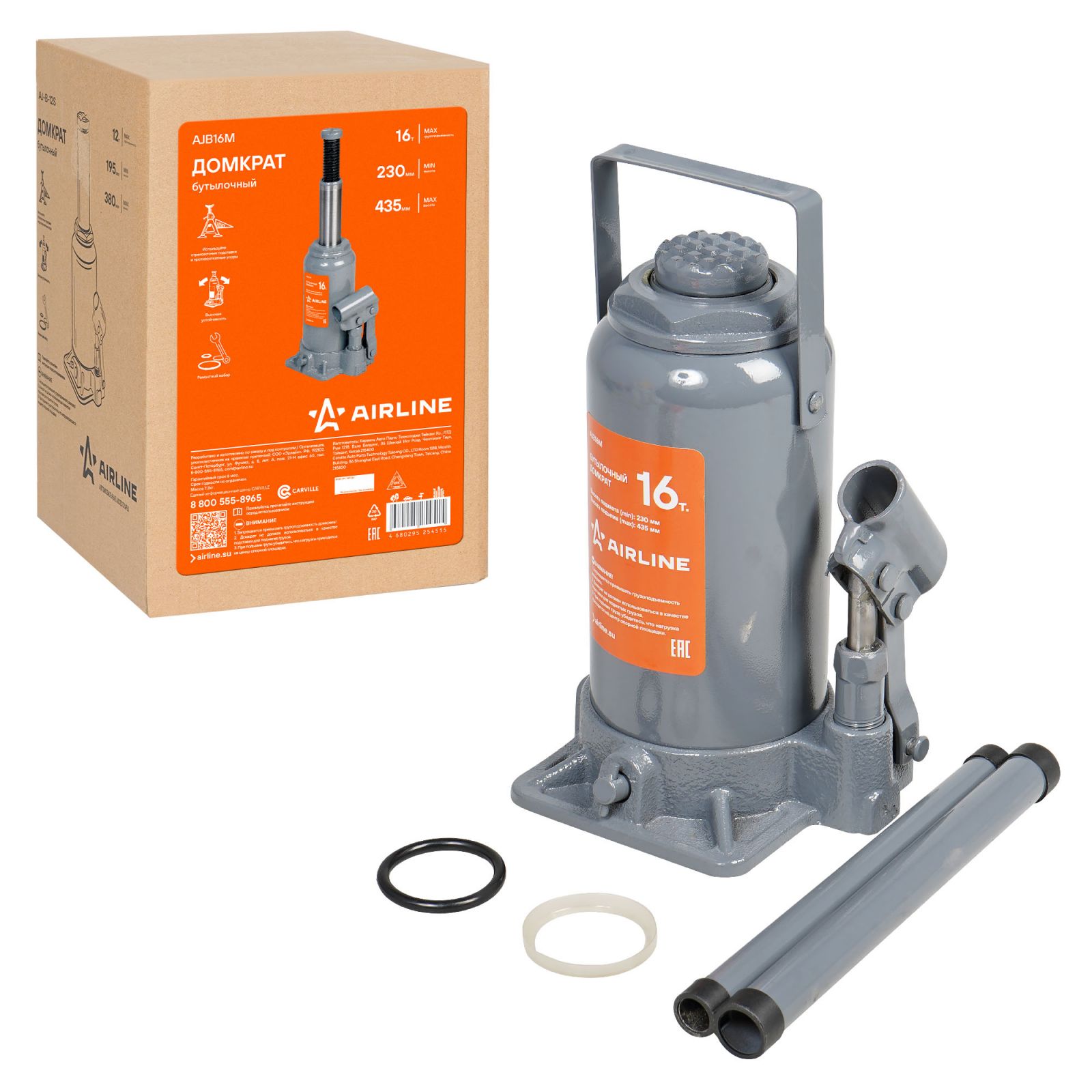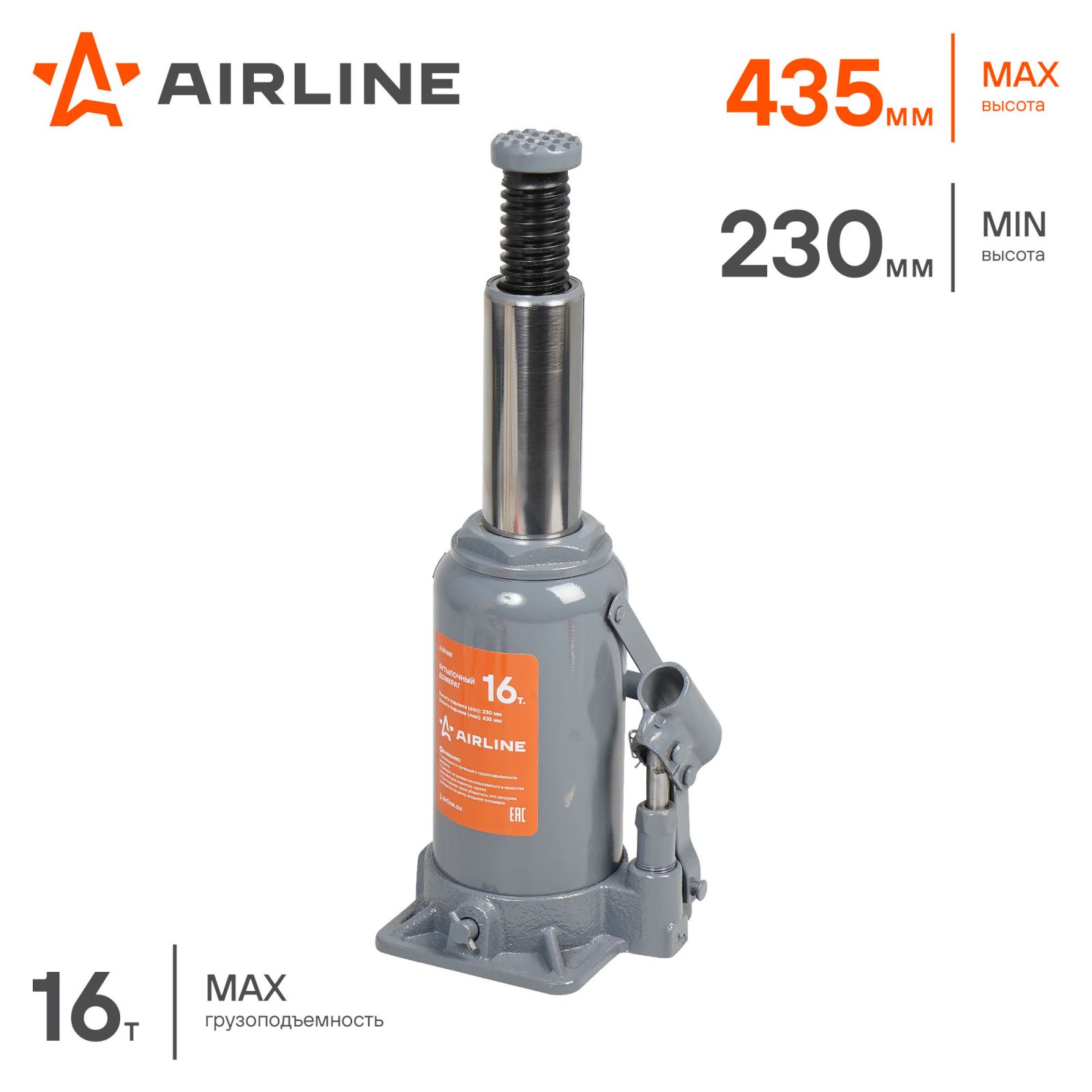 Домкрат бутылочный 16т 230-435мм (AJB16M)