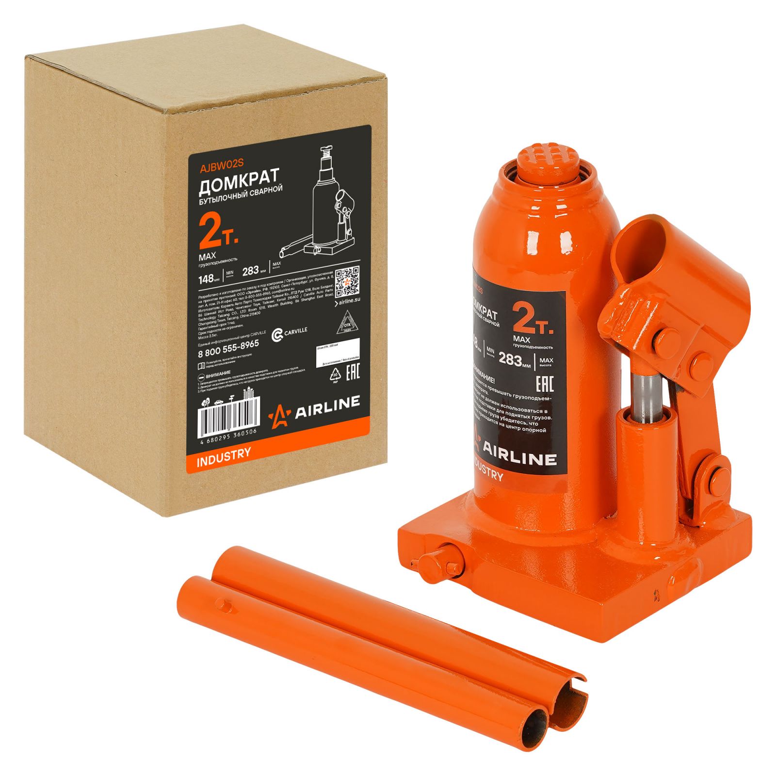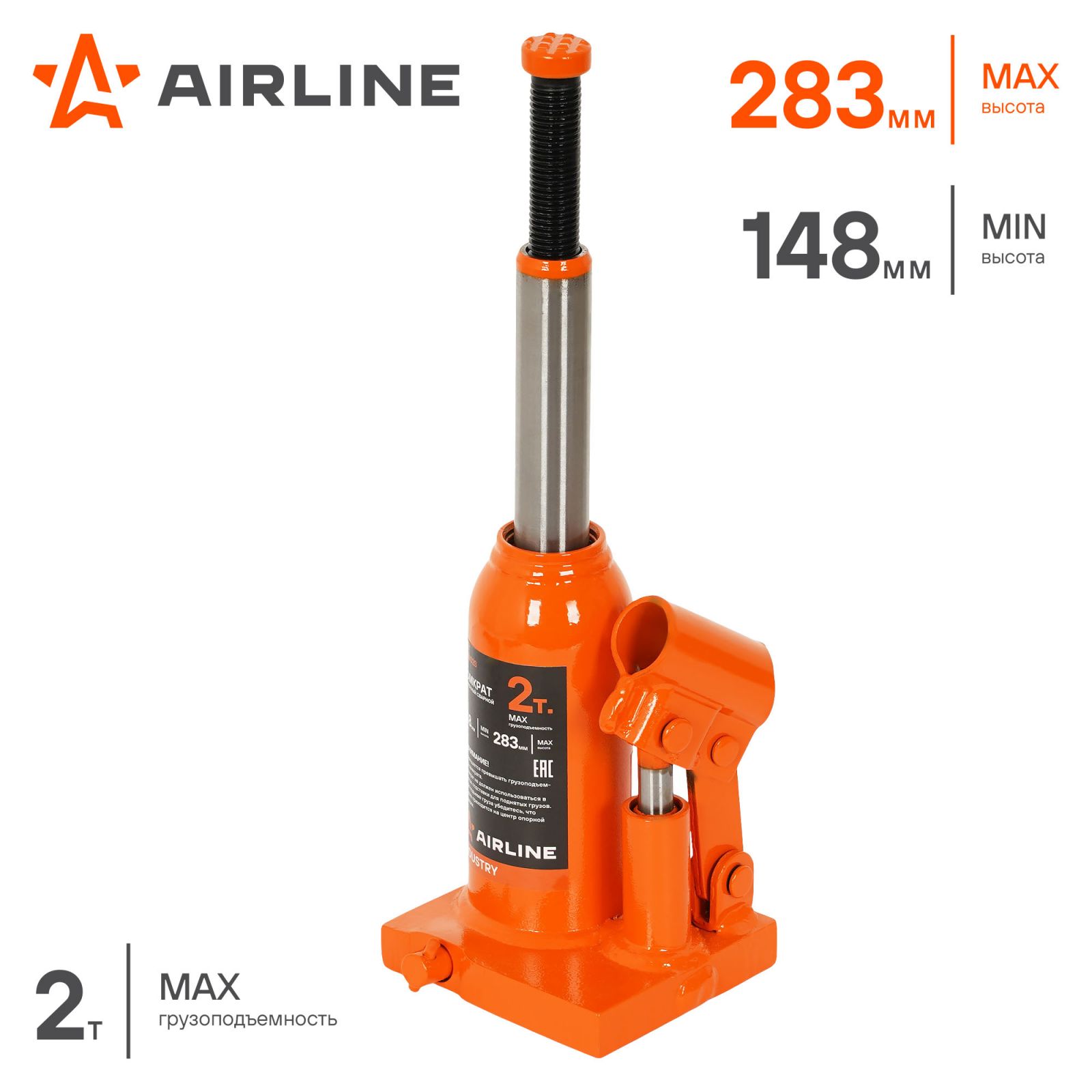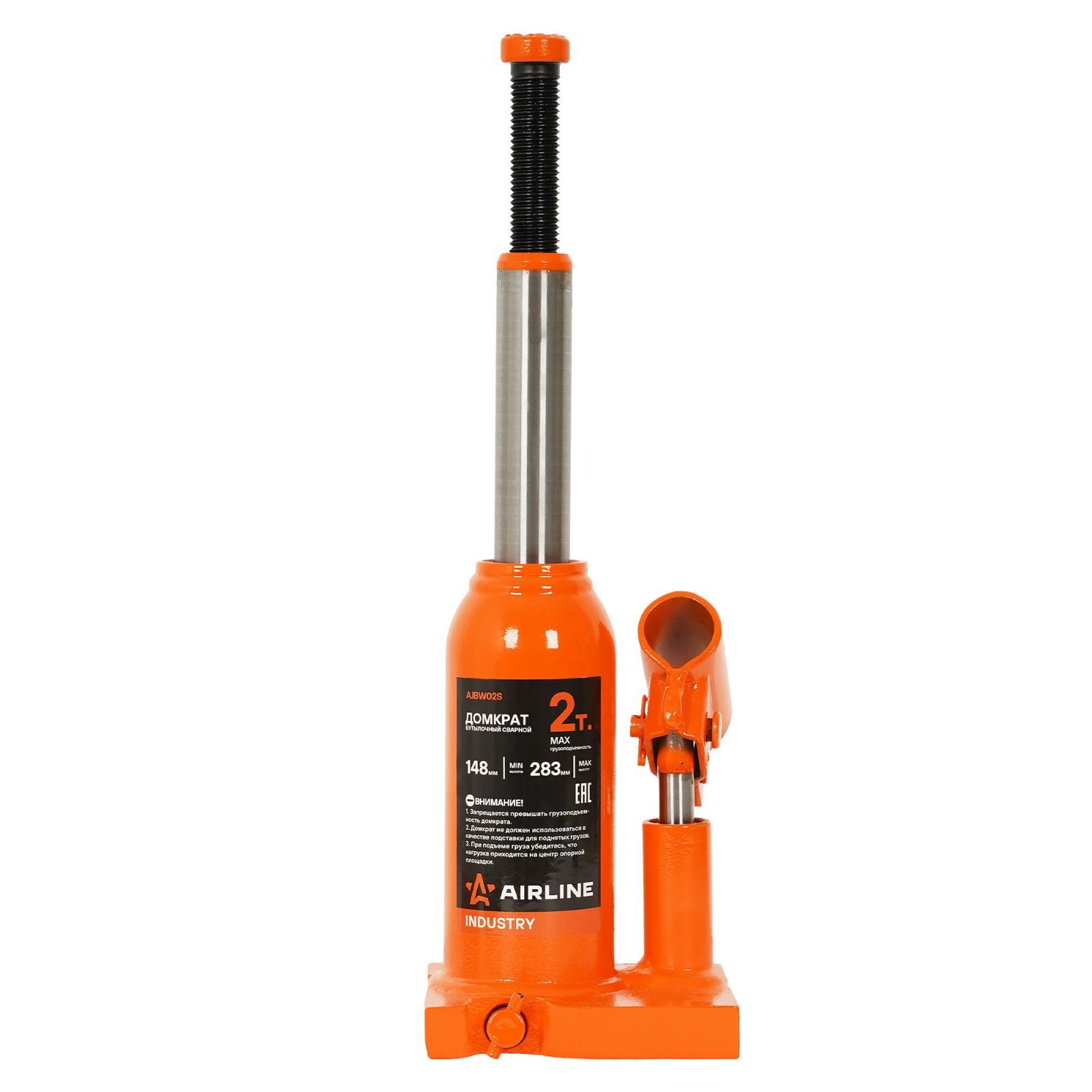 Домкрат бутылочный сварной 2т 148-283мм INDUSTRY (AJBW02S)