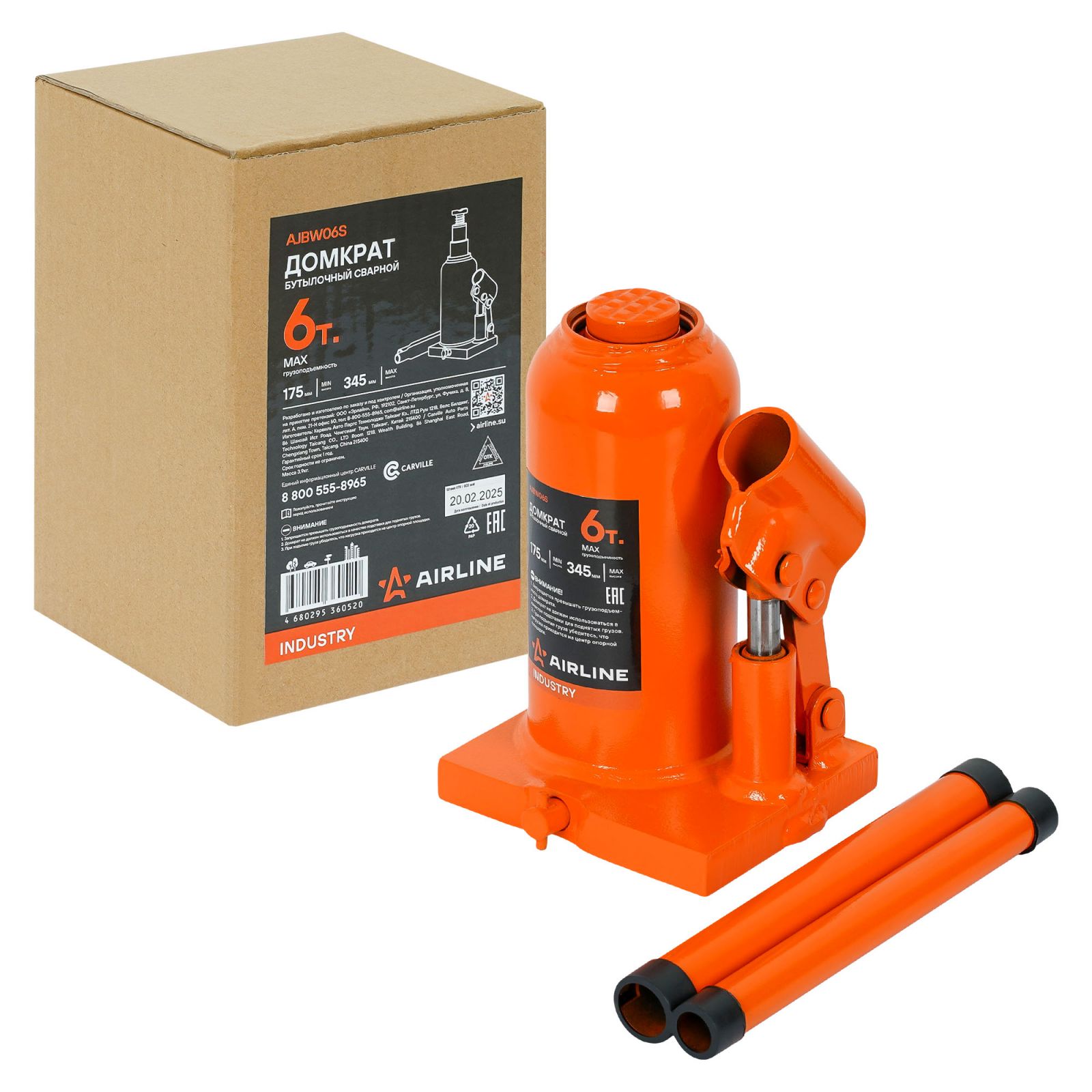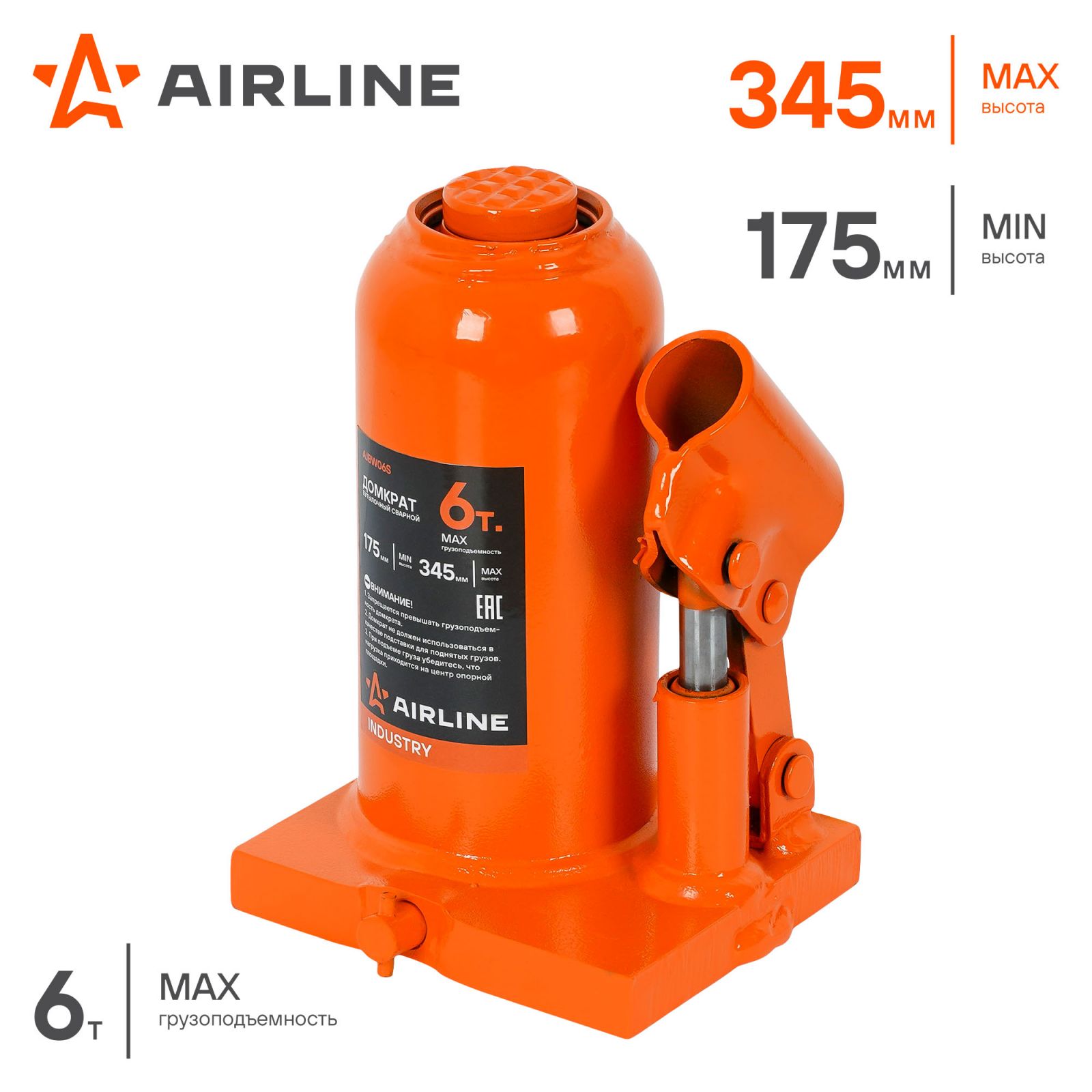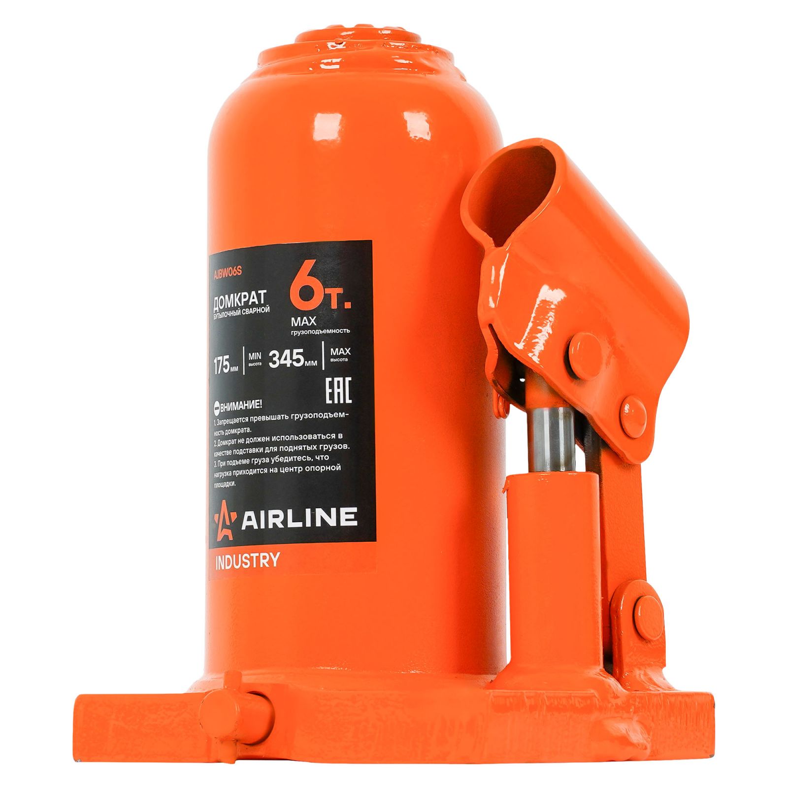 Домкрат бутылочный сварной 6т 175-345мм INDUSTRY (AJBW06S)