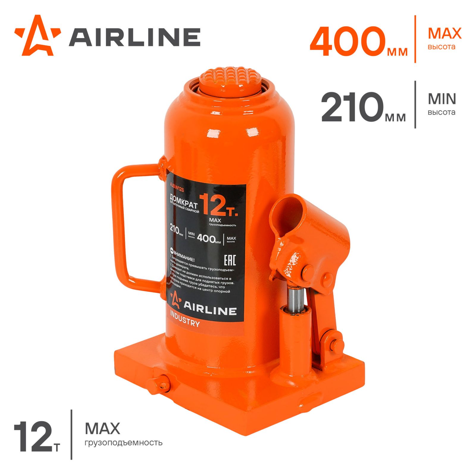 Домкрат бутылочный сварной 12т 210-400мм INDUSTRY (AJBW12S)