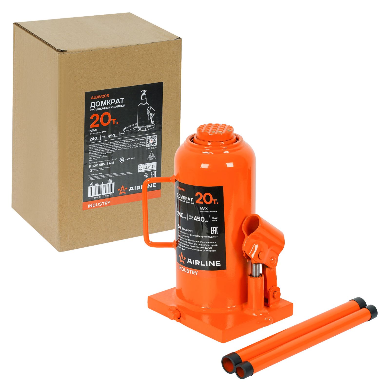 Домкрат бутылочный сварной 20т 240-450мм INDUSTRY (AJBW20S)