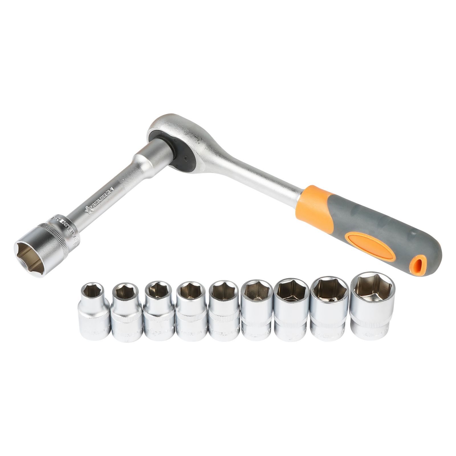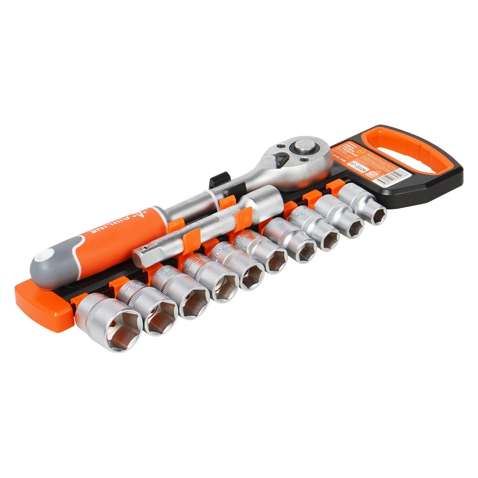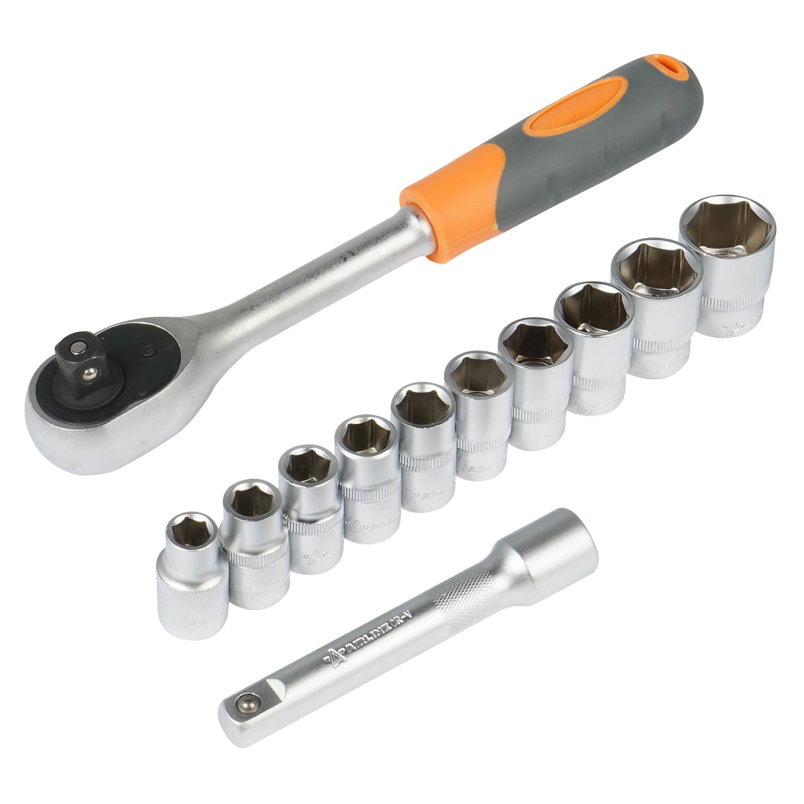 Набор головок 1/2" шестигранных с трещоткой 72Т 12пр. (10-24мм, удлинитель 125мм) (AT-12-36)