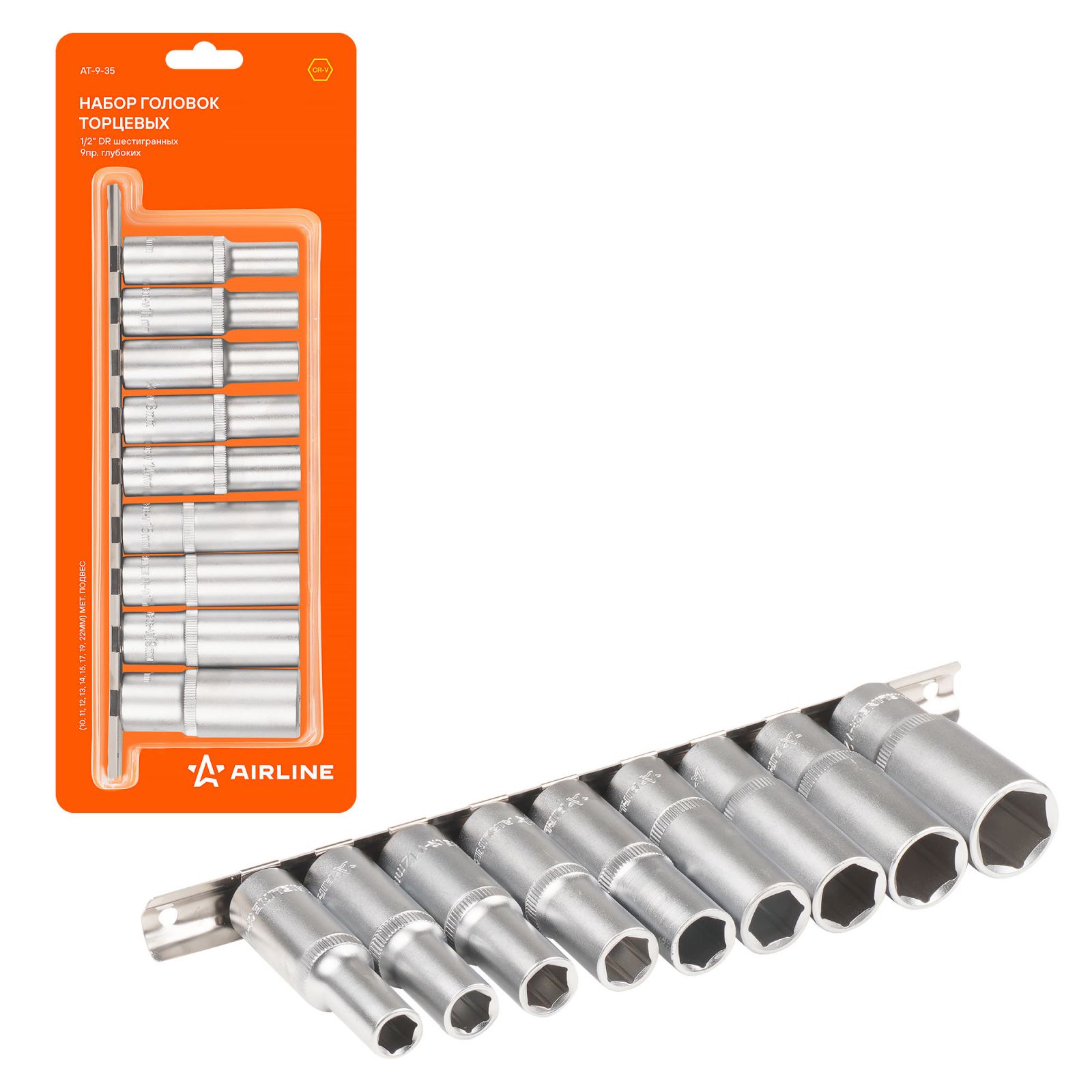 Набор головок 1/2" шестигранных глубоких 9пр. (10-22мм) (AT-9-35)