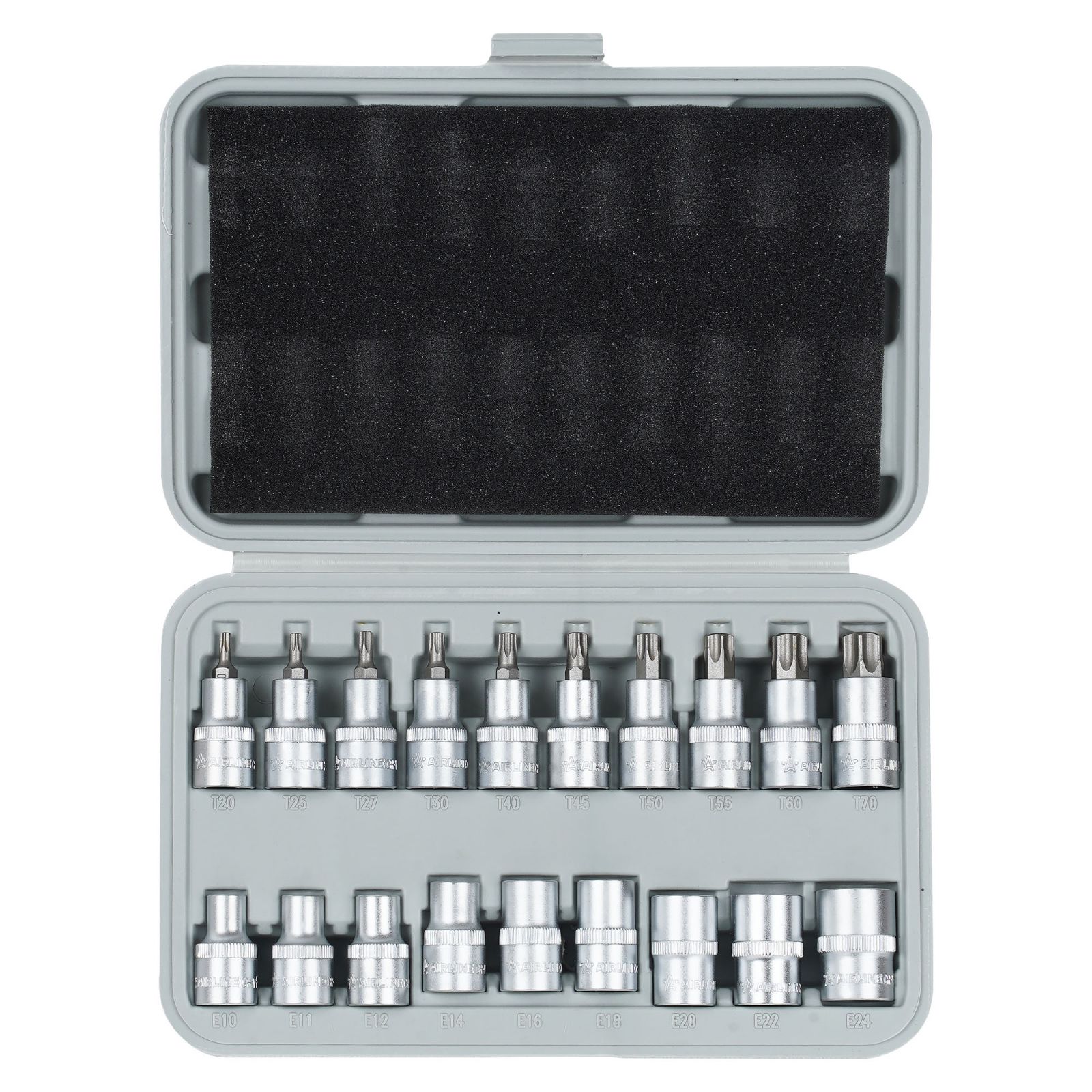 Набор головок 1/2" TORX 9пр. (E10-E24) и головок со вставками, L=55мм, 10пр. (T20-T70), кейс (AT-BS-33)
