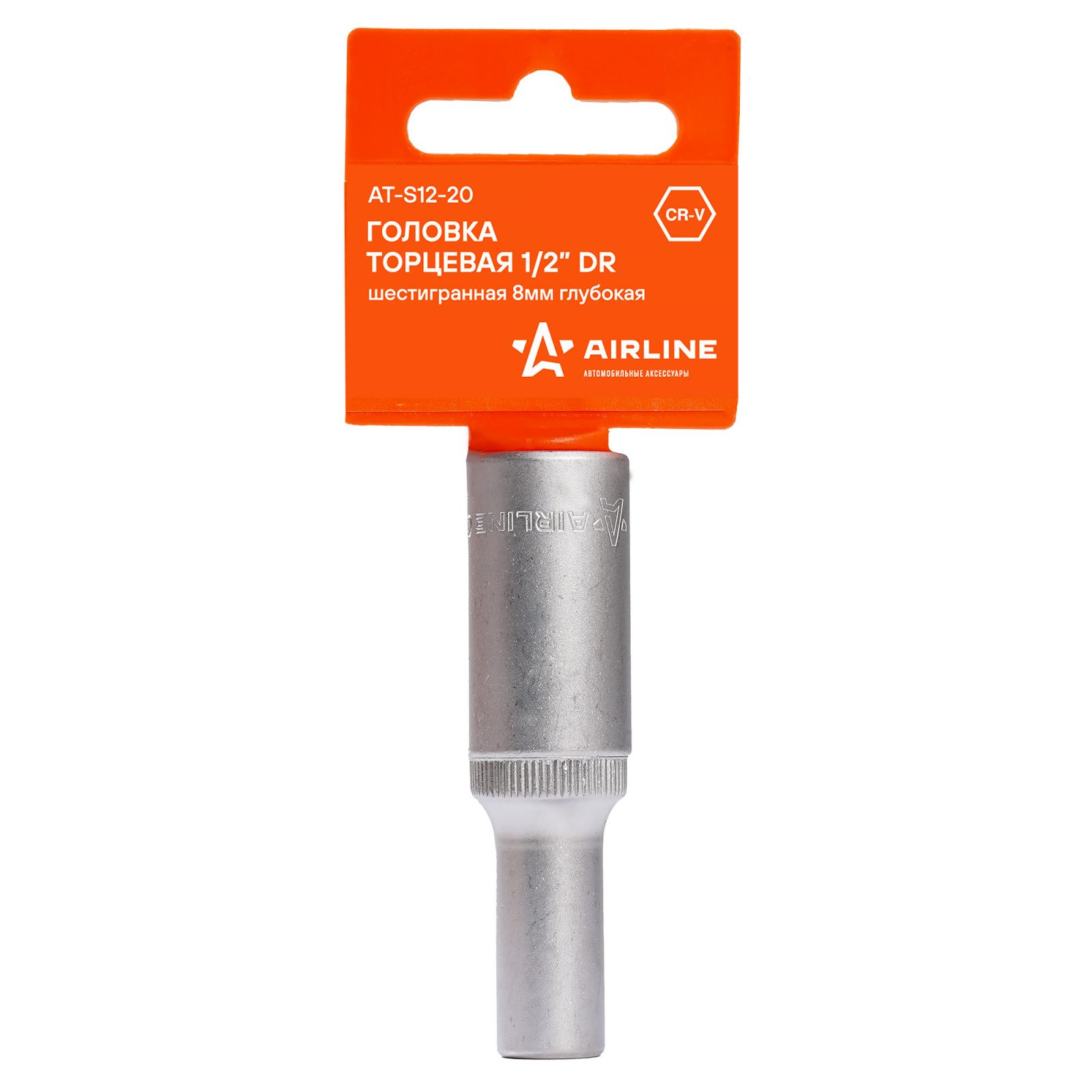 Головка торцевая 1/2" шестигранная 8мм глубокая, пласт.подвес (AT-S12-20)