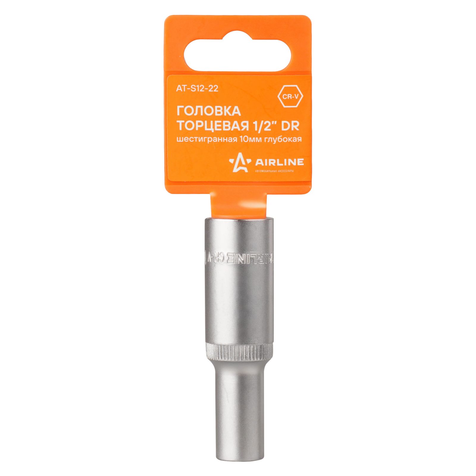 Головка торцевая 1/2" двенадцатигранная 10мм глубокая, пласт. подвес (ATAO023)