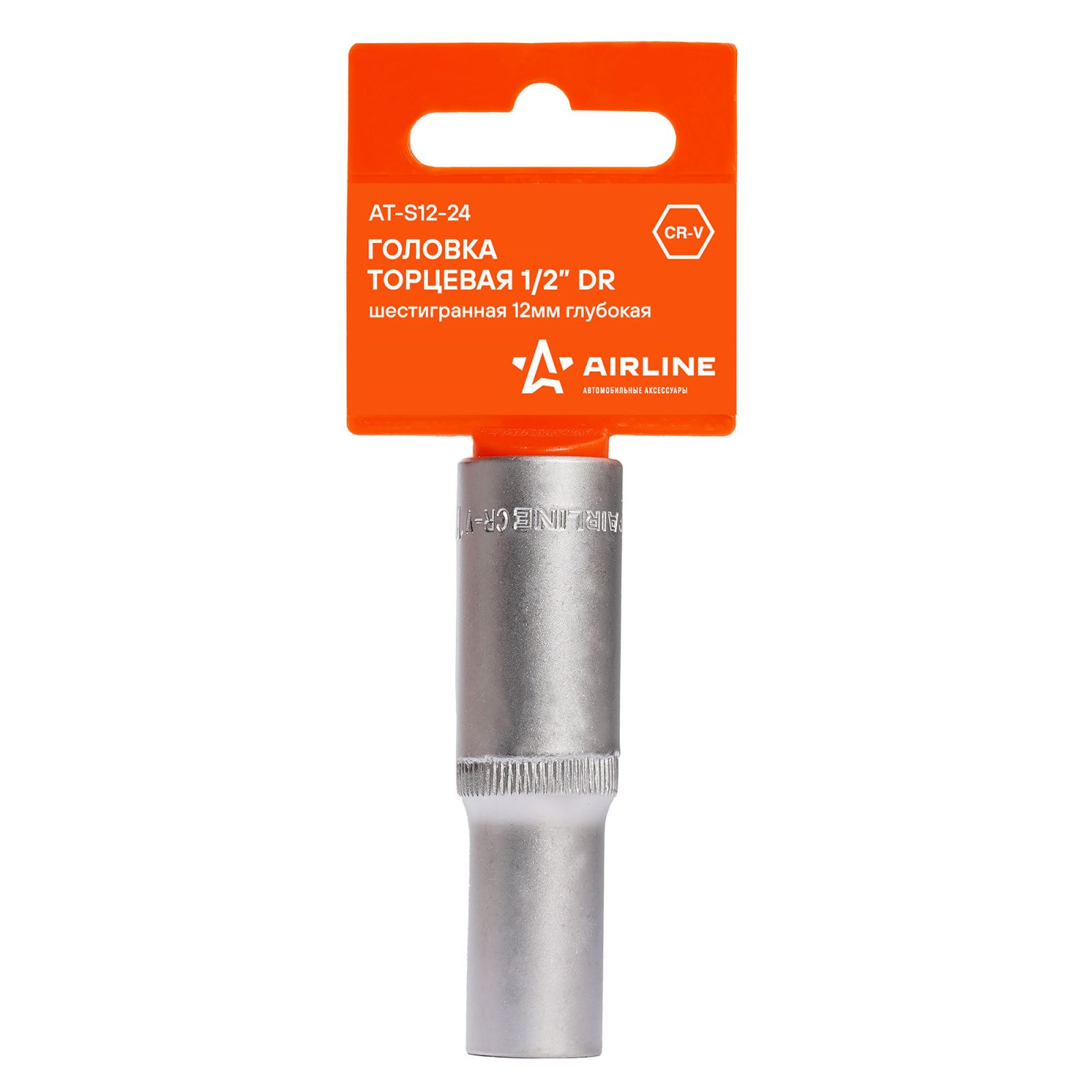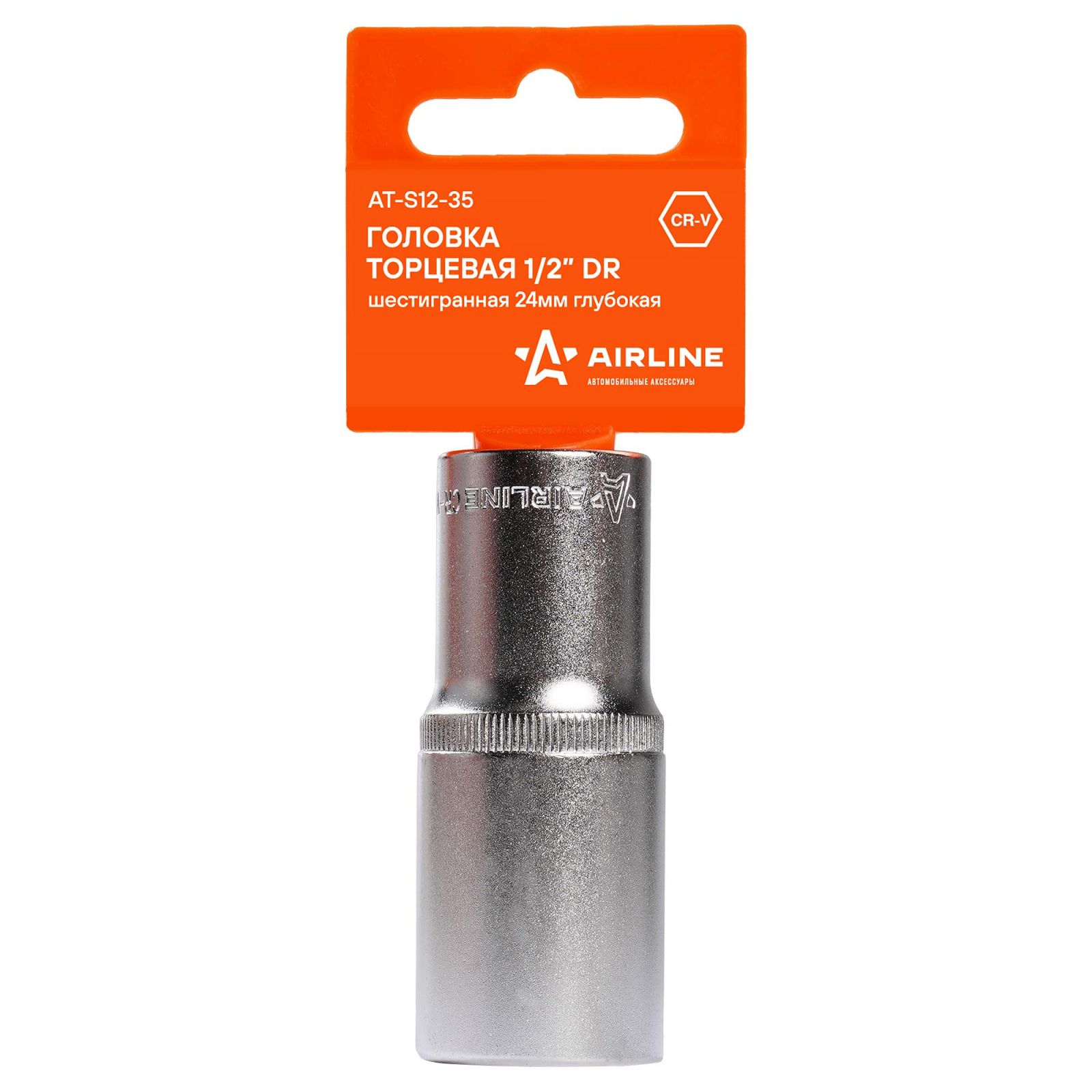 Головка торцевая 1/2" шестигранная 24мм глубокая, пласт.подвес (AT-S12-35)