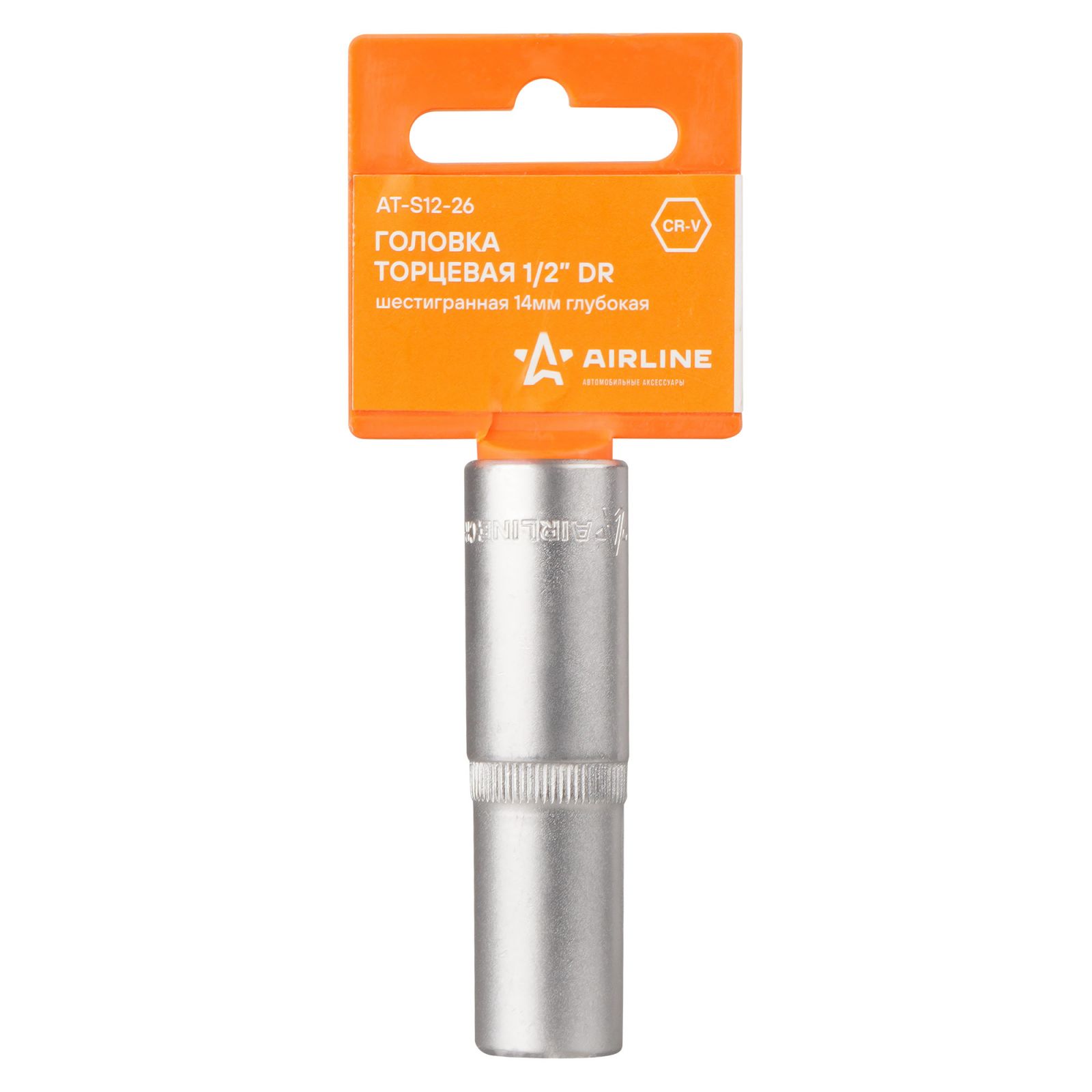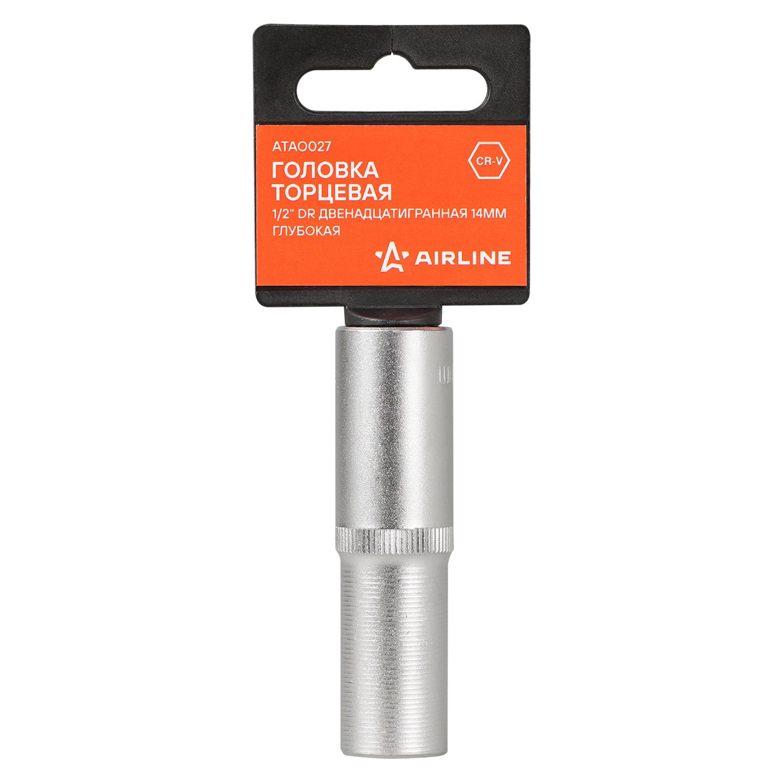 Головка торцевая 1/2" двенадцатигранная 14мм глубокая, пласт. подвес (ATAO027)